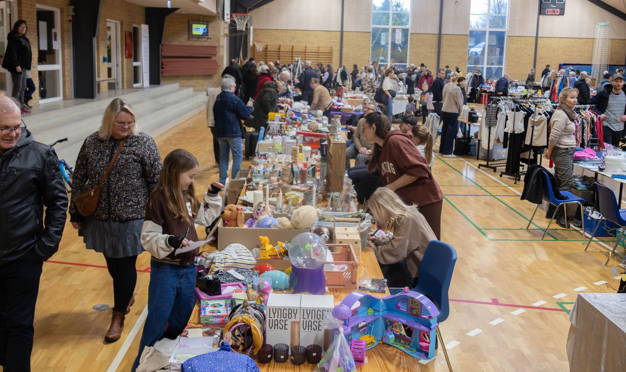 Apropos evaluering, så havde markedsudvalget brugt al den feedback, der var kommet ind fra sidste år, hvilket havde resulteret i, at man i år havde kaffe/kagebod, der var flere siddepladser i cafeteriet/kiosken, der var bedre muligheder for tøjstativer, og så var der mulighed for pølsemix og sandwiches i kiosken og meget mere.