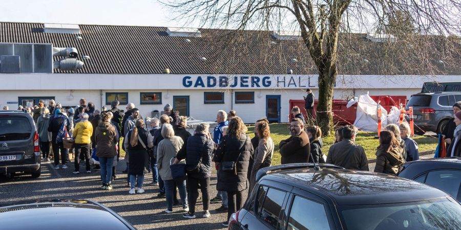 Foto: Allerede godt en halv time før åbningen kl. 9.30 var der massevis af folk udenfor hallen i Gadbjerg, som var klar til loppemarked. Foto: Jim Hoff