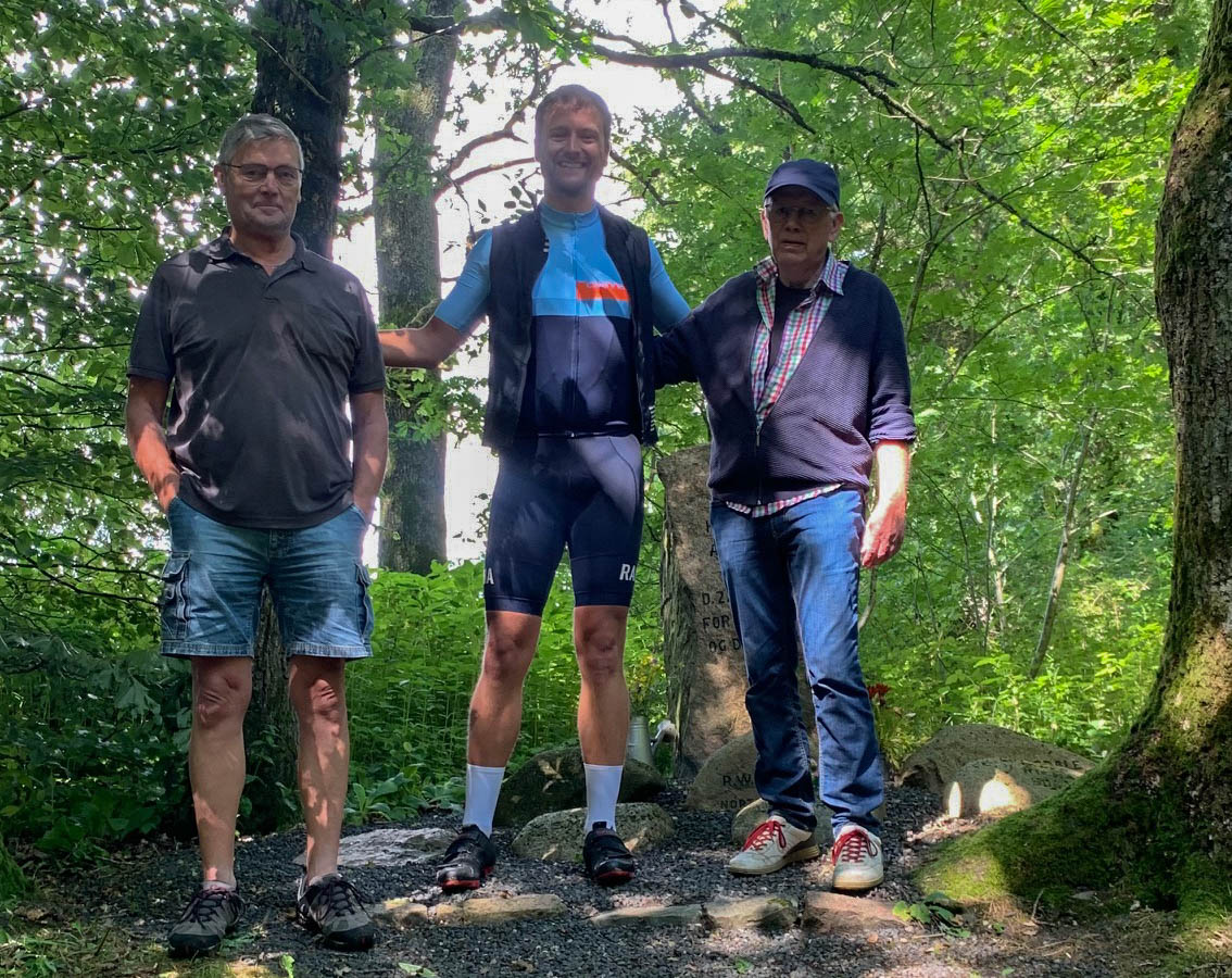 James Forsey sammen med Verner og Niels ved mindestenene i Vesterlund. Privatfoto