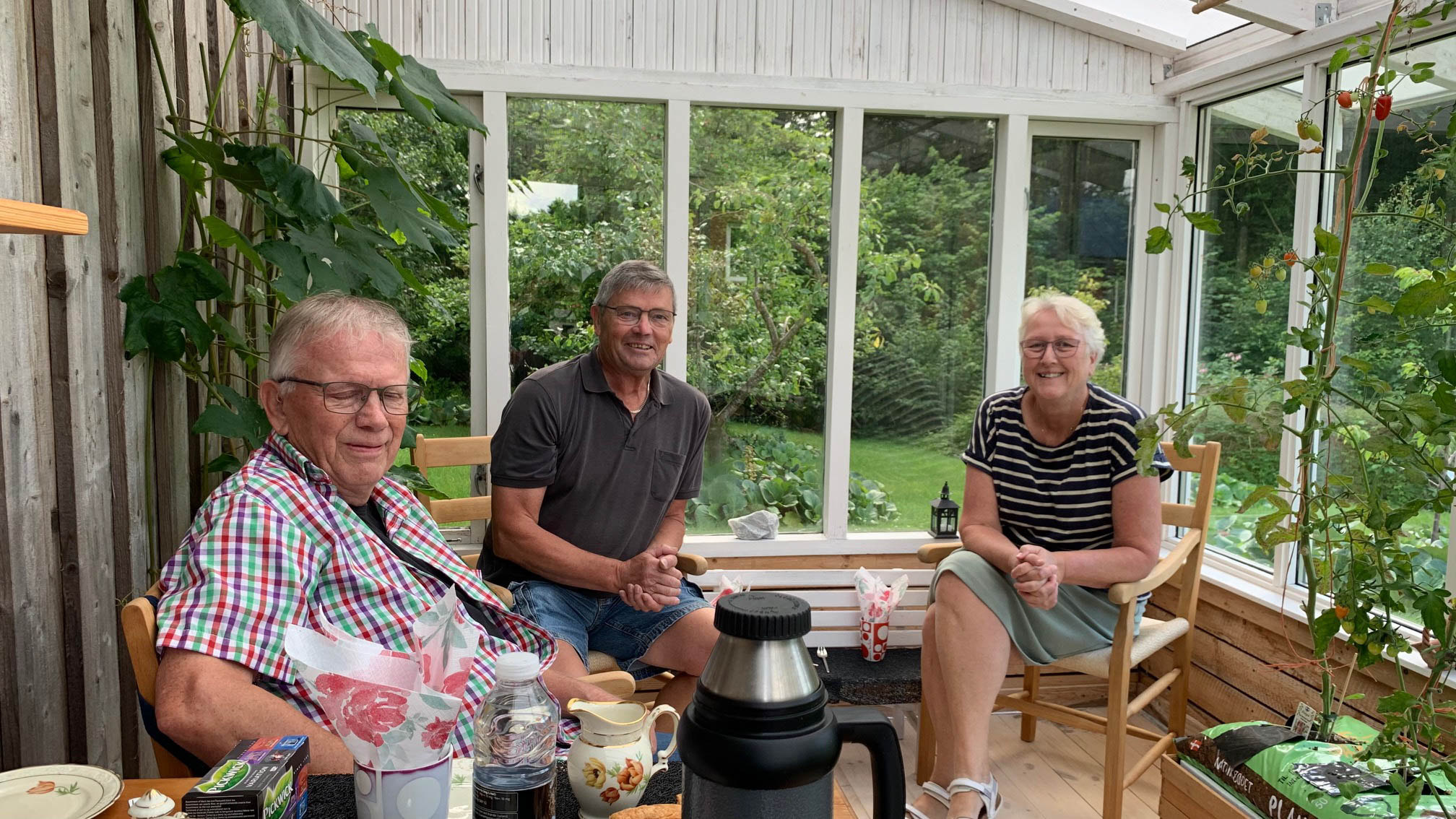 Efter besøget ved sin oldefars mindesten blev James inviteret på kaffe og wienerbrød hos Niels Vestergaard og hans hustru Lis. Foto: James Forsey