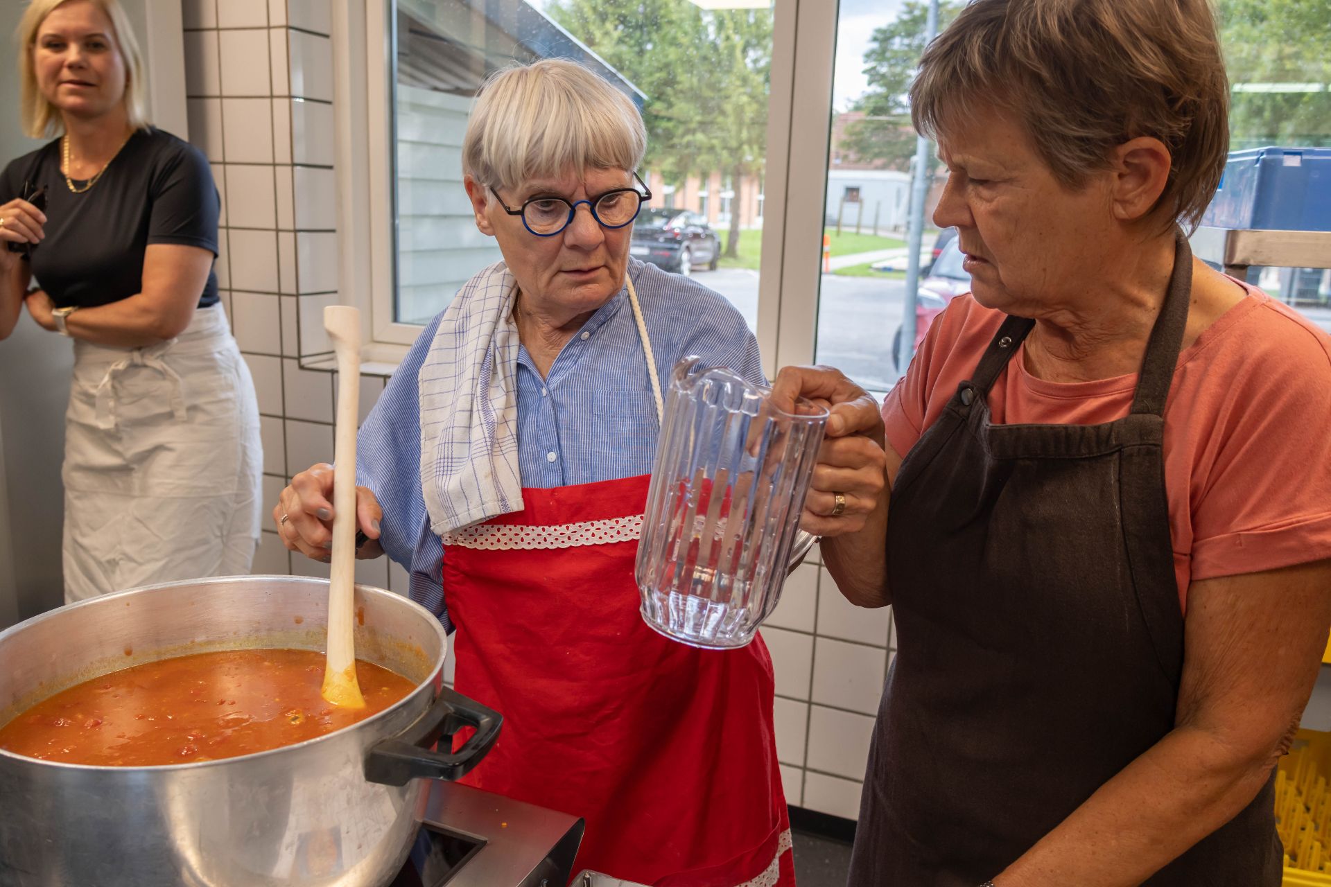 Avisen udsendte kunne ved selvsyn konstatere den herlige dynamik, der var i det travle men bestemt også muntre køkken, hvor mænd og kvinder i stærkt samarbejde fik tryllet den fine mad frem. Naturligvis blev der brugt en del krydderier denne eftermiddag, men dagens mest udbredte krydderi var helt sikkert ‘humoren’, der blev drysset rundhåndet ud over det travle køkkenhold.