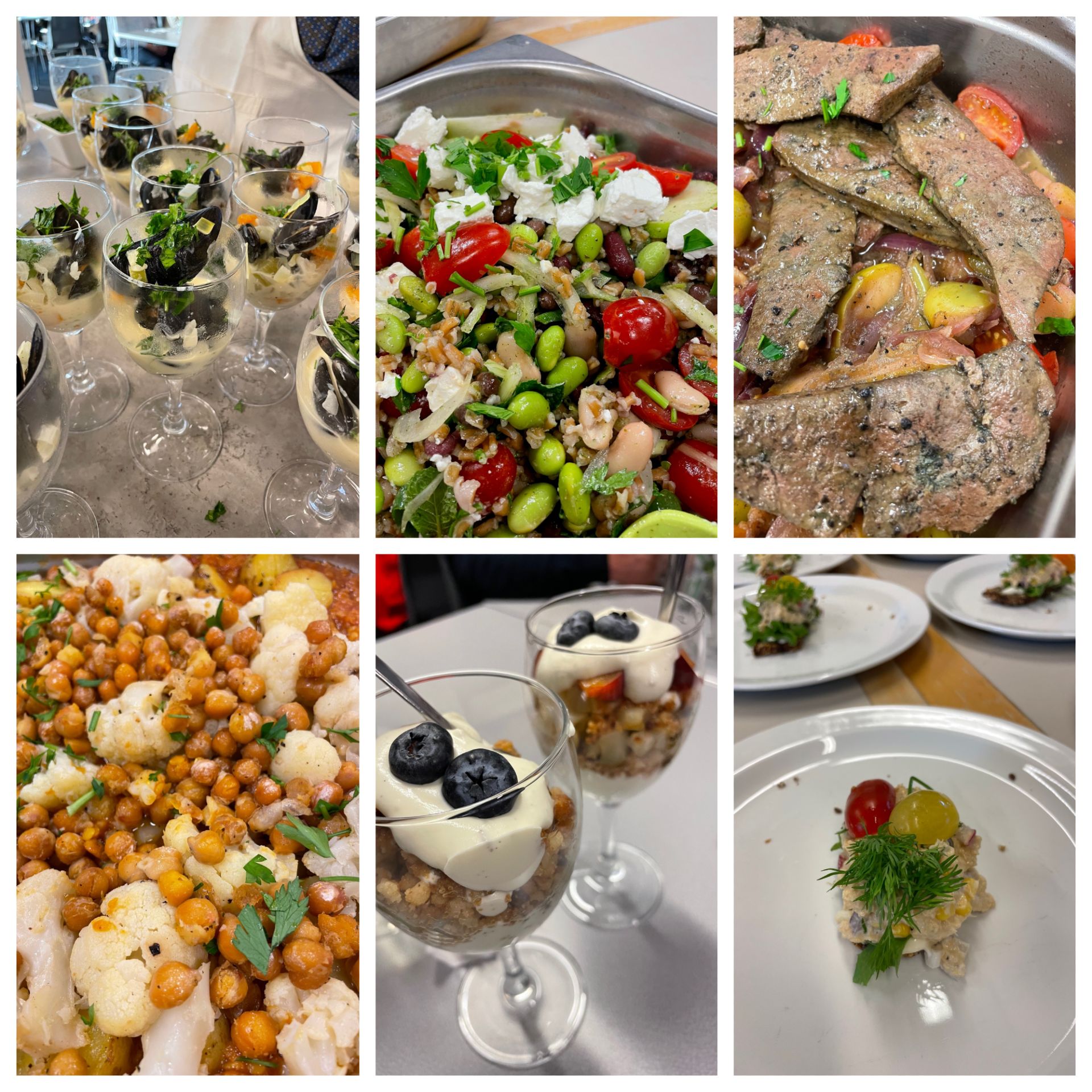 De seks sunde klimavenlige retter bestod af en “No Tuna Mousse”, der ifølge Katja smagte fuldstændig som tun, men var helt uden, idet retten er baseret på et planteprodukt af kikærter og hestebønner.