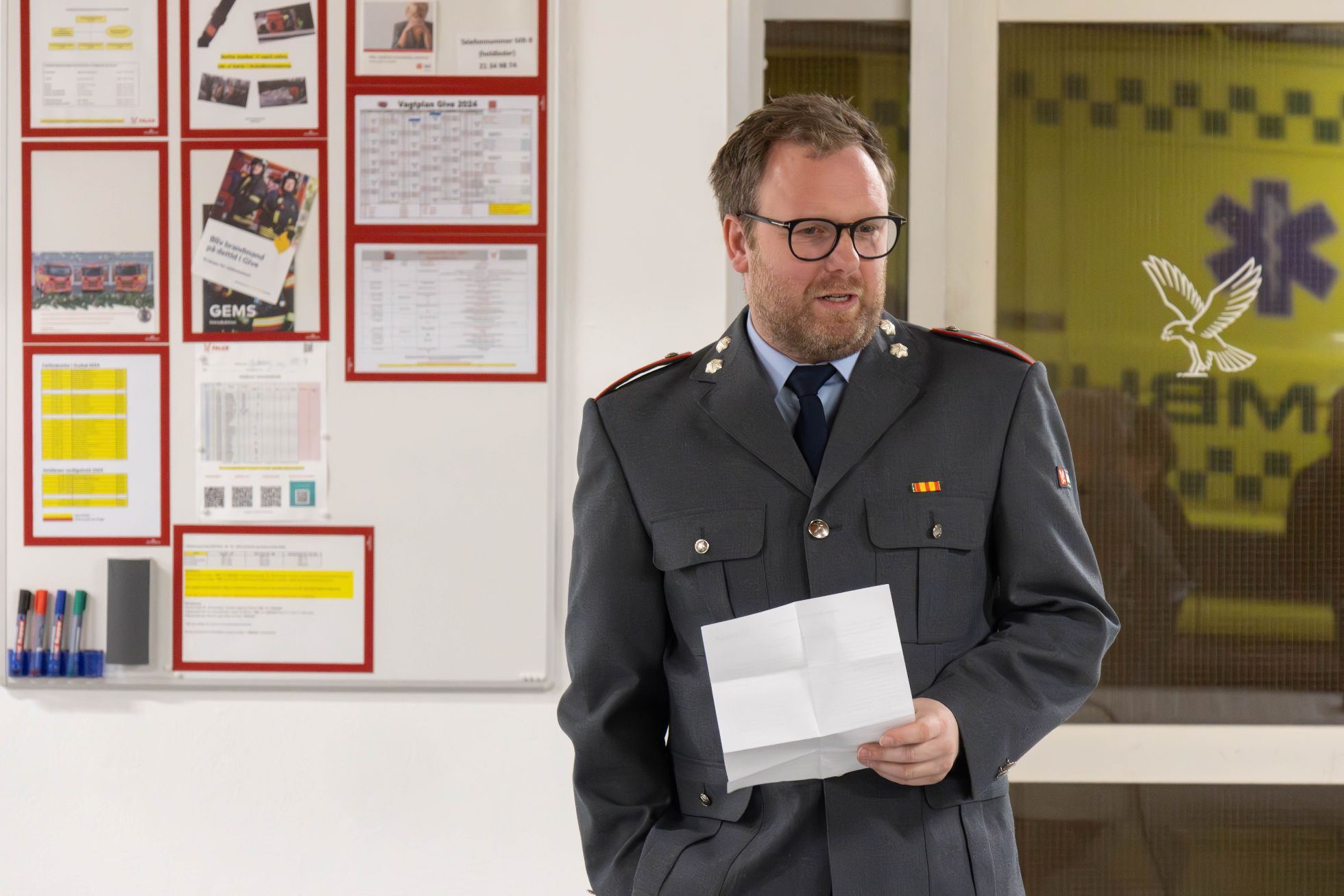 Efter denne overordnede indgang til nytårsparolen fra chefen for det hele, var det den lokale stationsleder, Erling Jørgensen, der kunne fortælle om årets gang 2024 på stationen i Give.