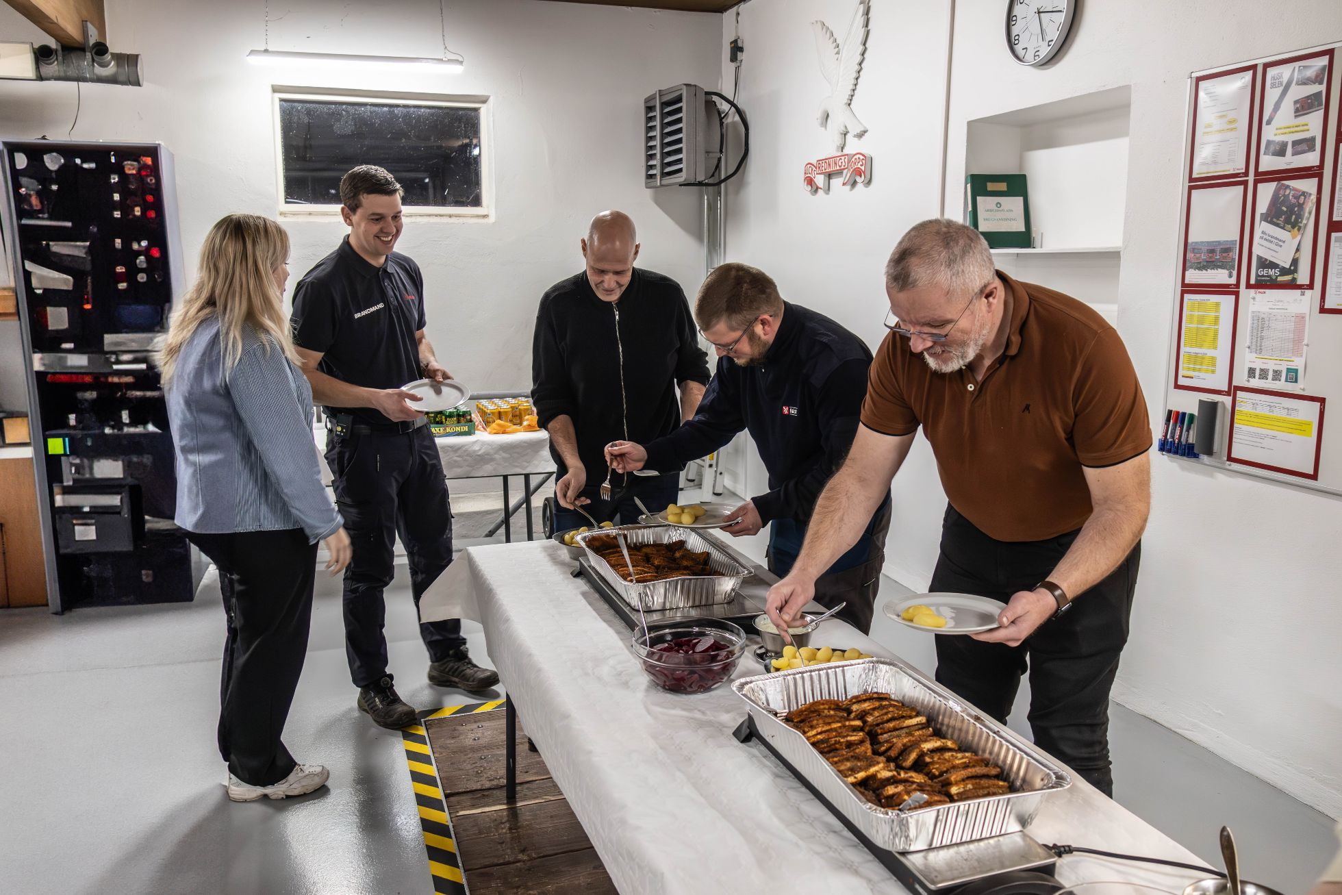 Der var inviteret på taler samt tilbageblik på 2024, da stationsleder Erling Jørgensen havde inviteret til nytårsparole på Falckstationen i Give den 30. december. Og naturligvis stod den også på godt kammeratligt samvær og stegt flæsk med persillesovs som en perfekt afsked med et ganske roligt 2024 på stationen.