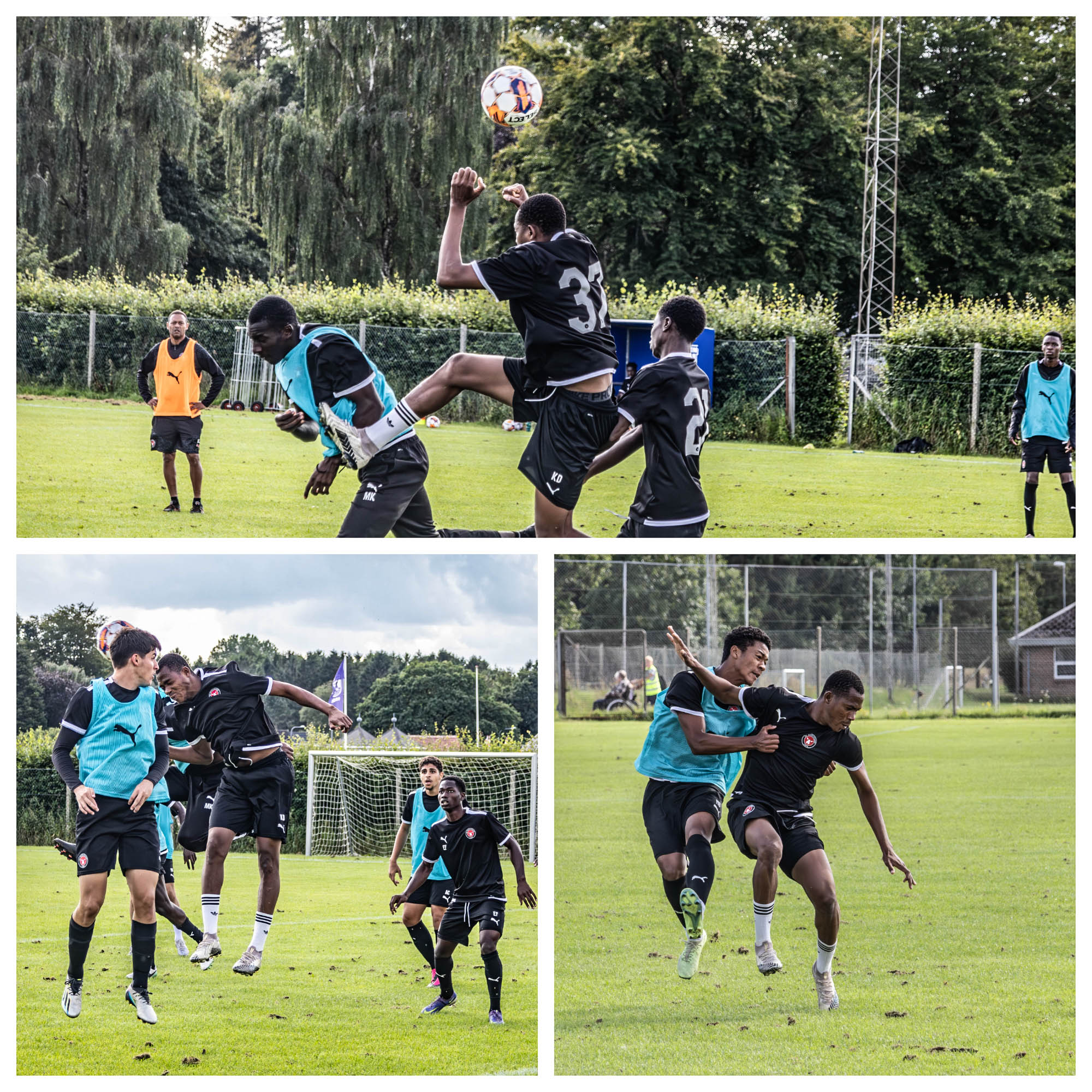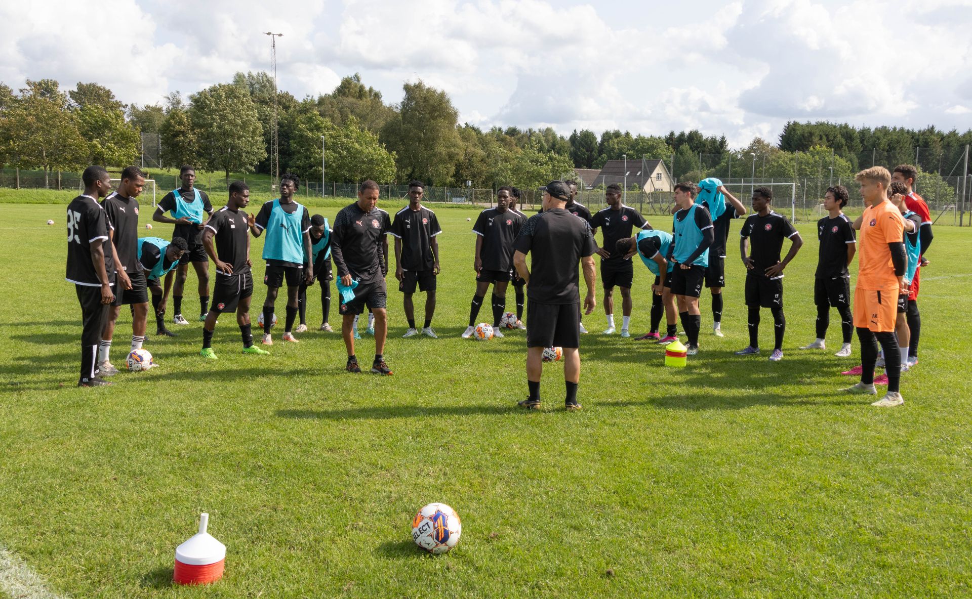 - Og når spillerne først er i gang ude på banen, så taler de jo alle sammen det samme sprog, nemlig fodbold, så det er gået fint med kommunikationen. Spillerne er meget lydhøre, selv om der jo står meget på spil for dem rent personligt. For nogle handler det om ren overlevelse, og nu her efter 20 dage med træning og kamp er de også ved at være godt møre både fysisk og mentalt, konstaterer Denni Conteh, mens Ove P. varmer dagens trup op, inden det går løs med en taktisk spiløvelse, hvor man spiller 6:10 plus keepere med fokus på forsvarsspillet hos de 6.