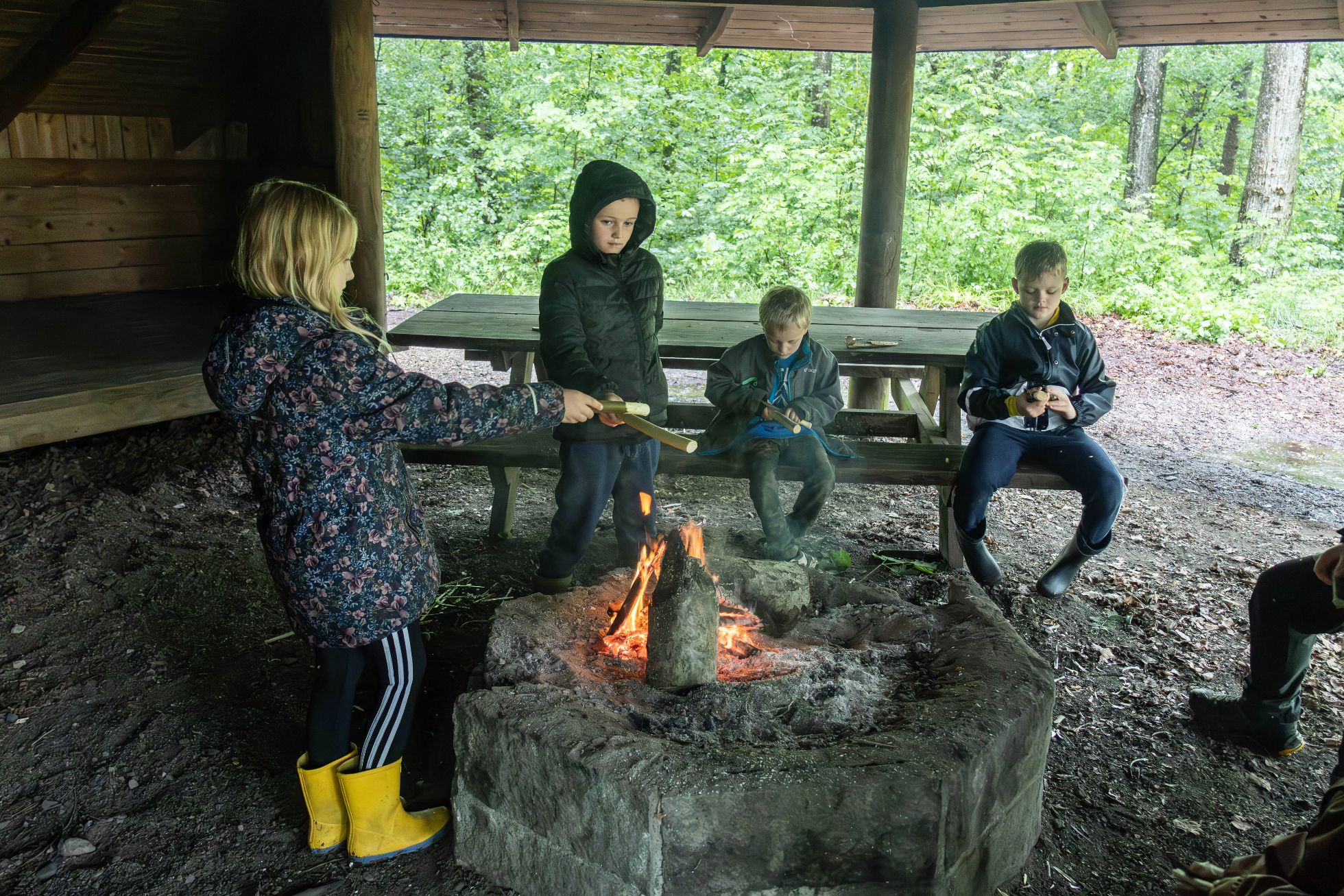 Uanset om det regner eller sner, så kan hyggestunder i bålhytten asltså bare noget. Foto: Jim Hoff