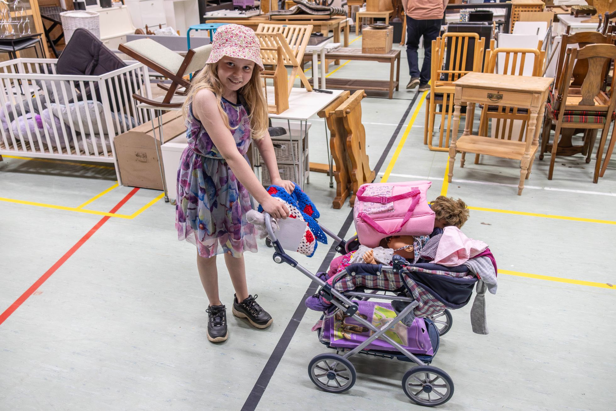 Denne søde unge dame gjorde nogle virkelig gode fund til legeværelset - og hun gav kun 30 kroner ia lt. Foto: Jim Hoff