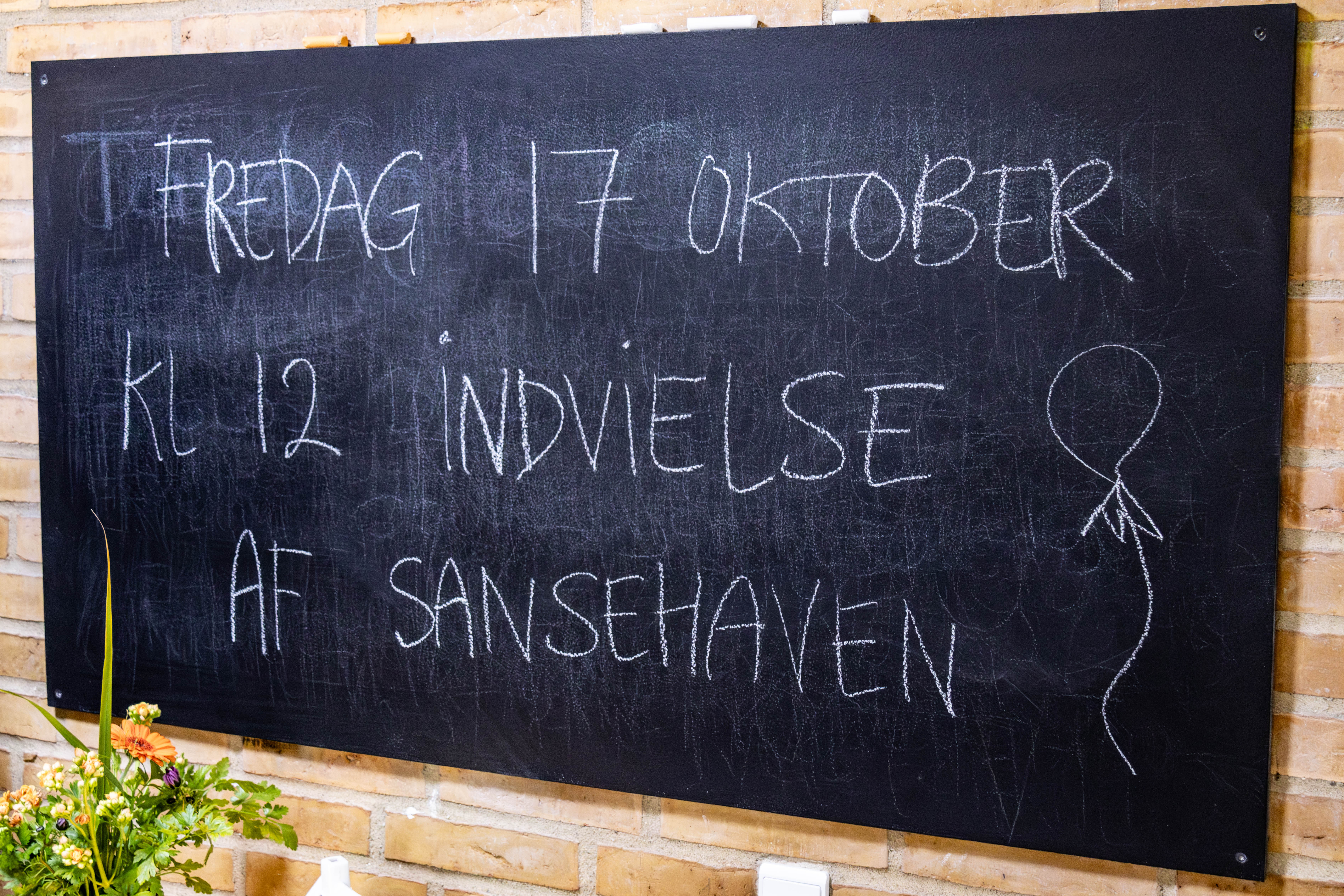 Sansehaven er en donation fra en af beboerne i Hus 12, 86-årige Kaj Schnorr, som vi jo alle sammen kender fra hans tid som Toyota-forhandler i Give gennem mange år og generelt en markant og populær skikkelse i bybilledet.