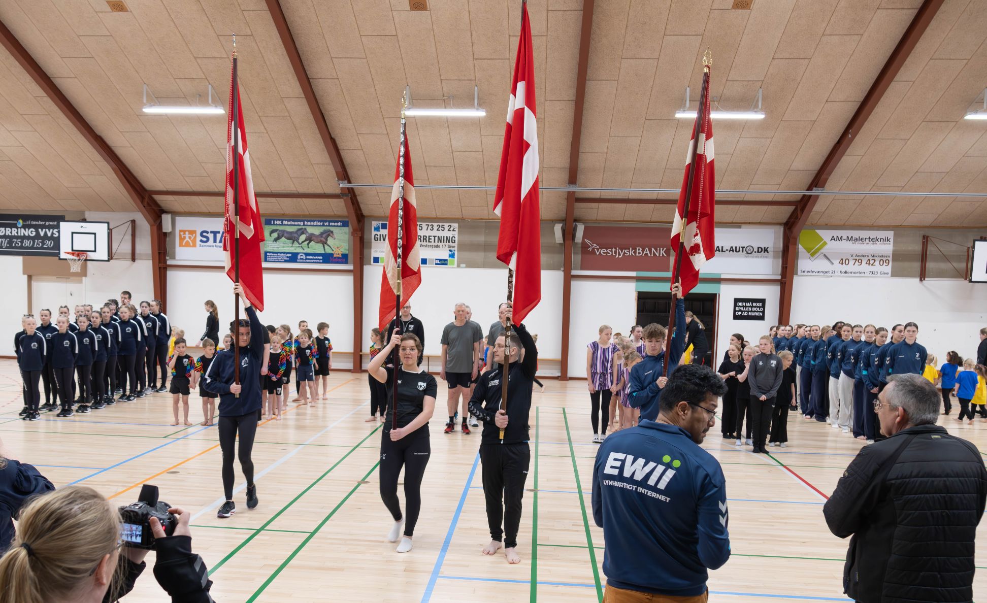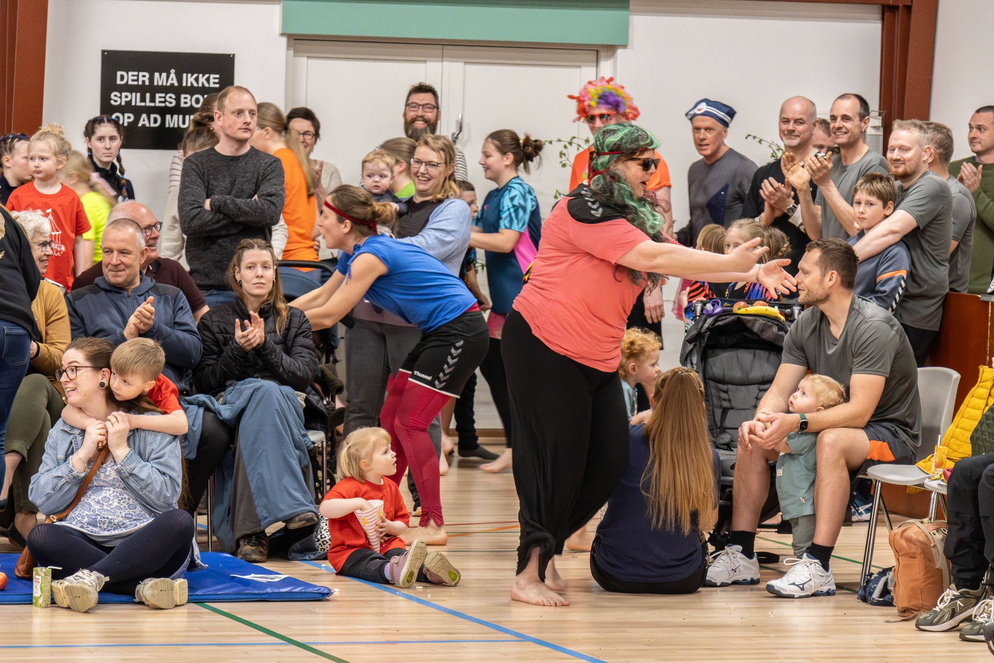 Arrangørerne havde stillet massevis af stole op, endda nogle rækker flere end man plejer, og det var en god ide, for folk myldrede ind ad dørene og besatte de mange siddepladser. Denne massive tilslutning gjorde ikke dagens optrædende, gymnasterne, mindre veloplagte. Lige fra de helt små ‘Hoppelopper’ og op til de en lille smule ældre ‘Svedige Mænd’ pumpede adrenalinen.