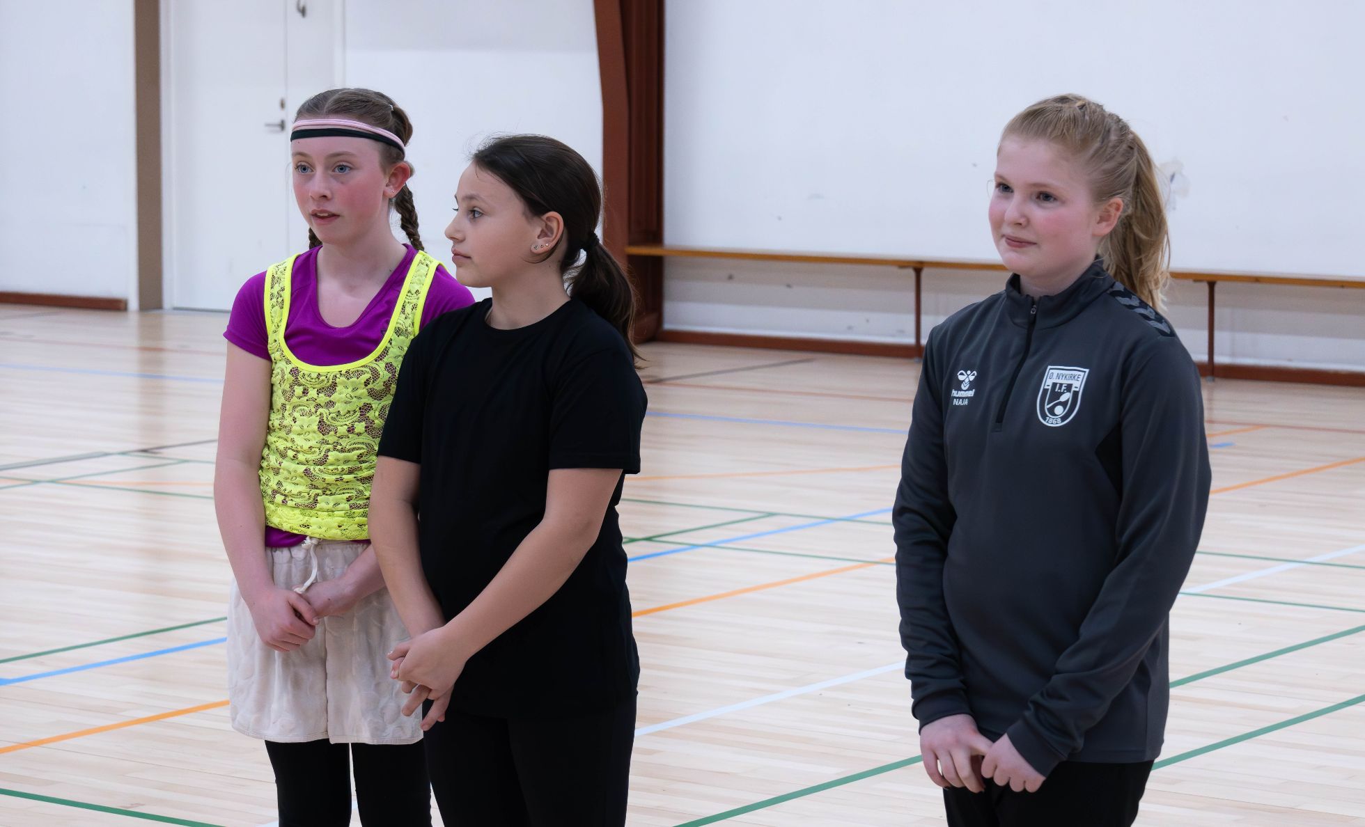Her er det fire piger fra 4. 5. klasse, Naya, Ea, Maia og Thea, der helt frivilligt tilbyder at lave dans og gymnastik med eleverne på skolen, og dette herlige hold fik naturligvis også plads på gulvet ved dagens gymnastikopvisning. Pigerne blev efter opvisningen hyldet af Torben Spejlborg fra Øster Nykirke Skole, hvor han fortalte om det godhjertede og fine projekt – og de herlige piger fik da også lige en gavepose med hjem.