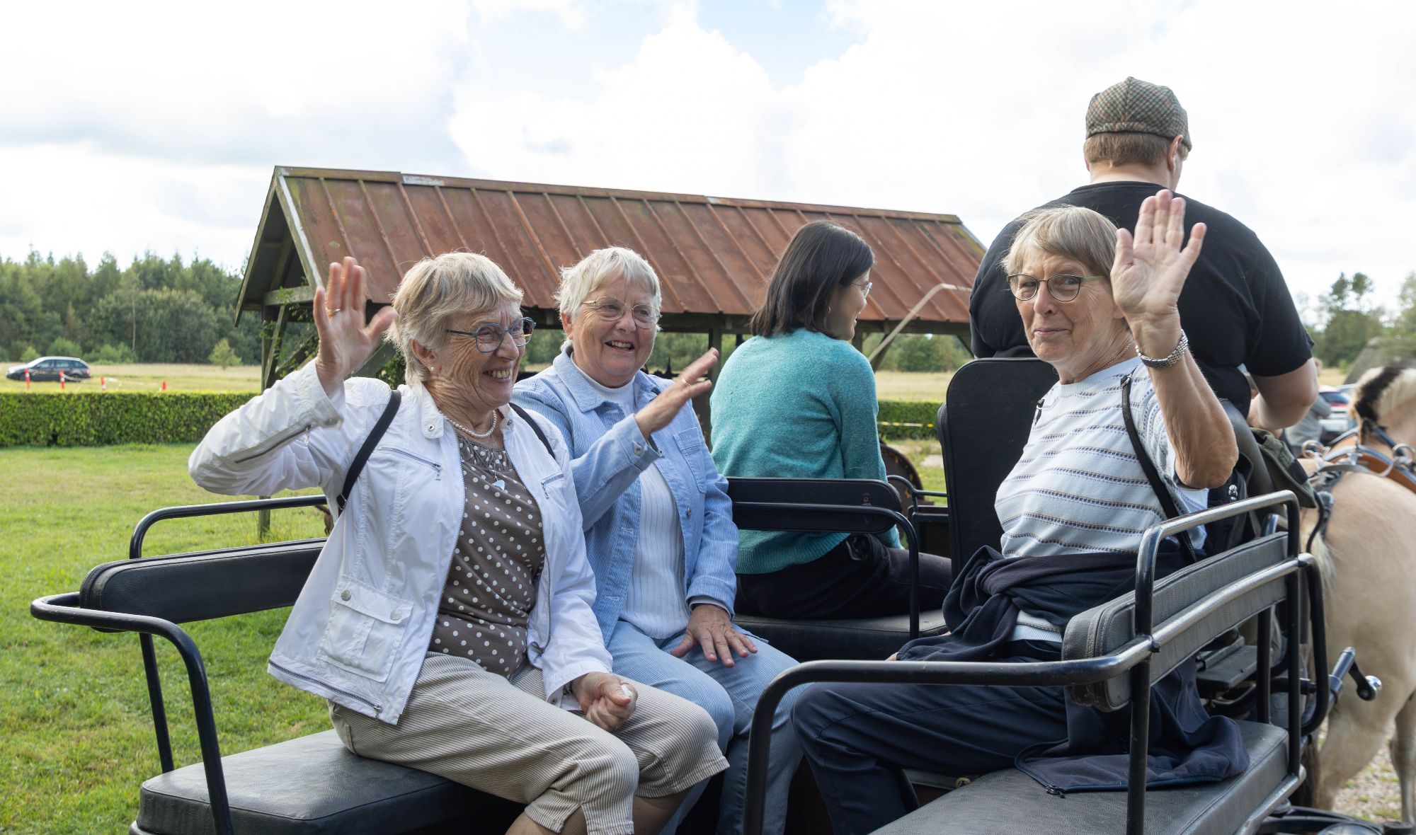 Her er en trio af friske unge damer hoppet op i hestevognen, og de var mere end klar til en festlig rundtur i det hyggelige køretøj. Foto: Jim Hoff