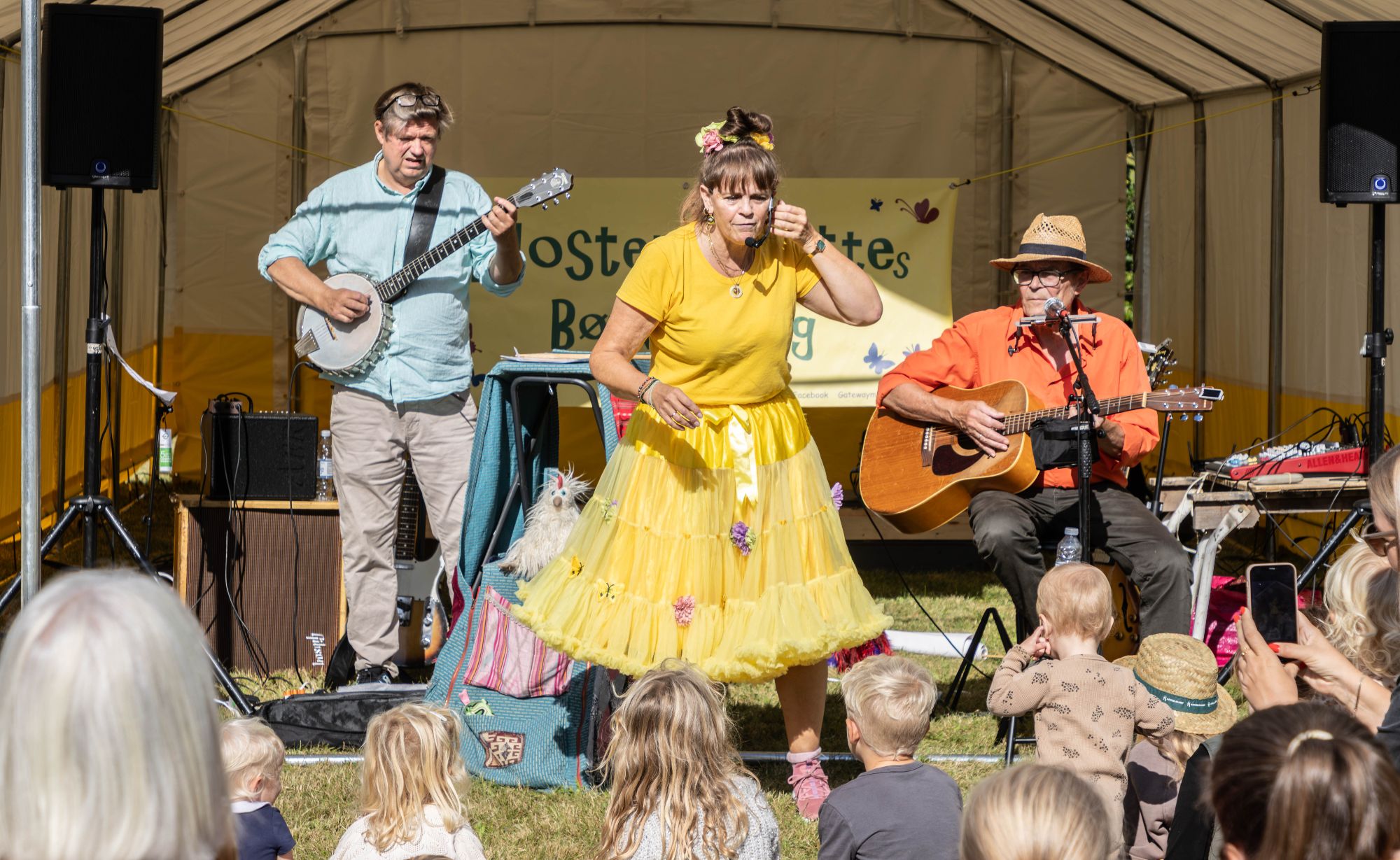 Inde i museumsgården duftede det lifligt af grillpølser, og omme i den store velassorterede frugthave var der linet op til en helt speciel forestilling med børn og børnefamilier som den primære målgruppe. Her var det Moster Zilettes Børneswing, der var klar med en herlig, munter og medrivende familiekoncert, som også appellerede til de voksne, både i forældre- og bedsteforældresegmentet.
