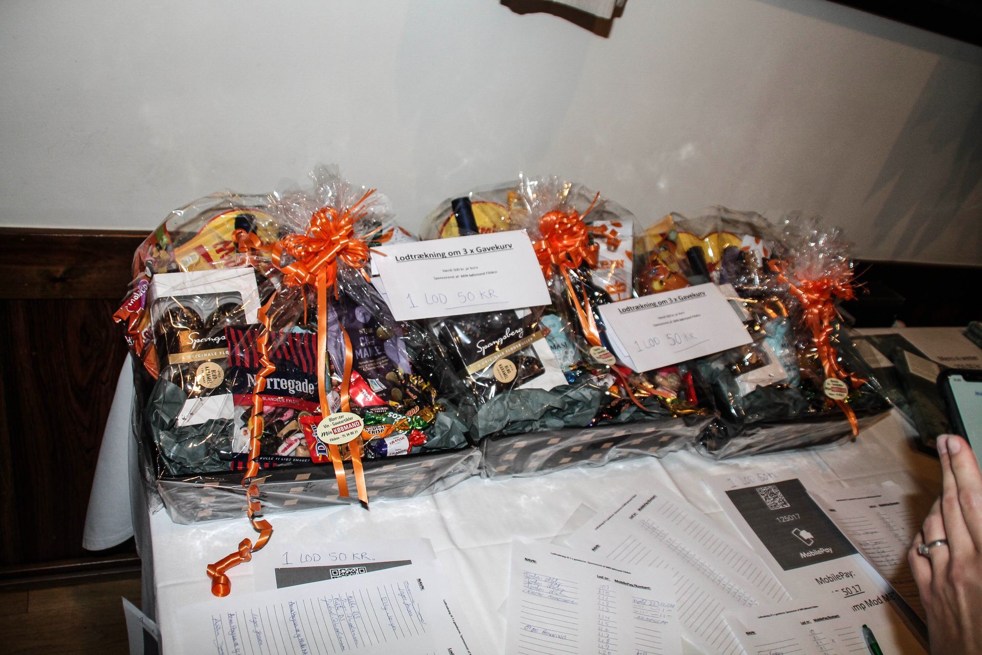 Der var fine gavekurve fra Min Købmand i Filskov til tombolaen. Foto: Søren Grunnet