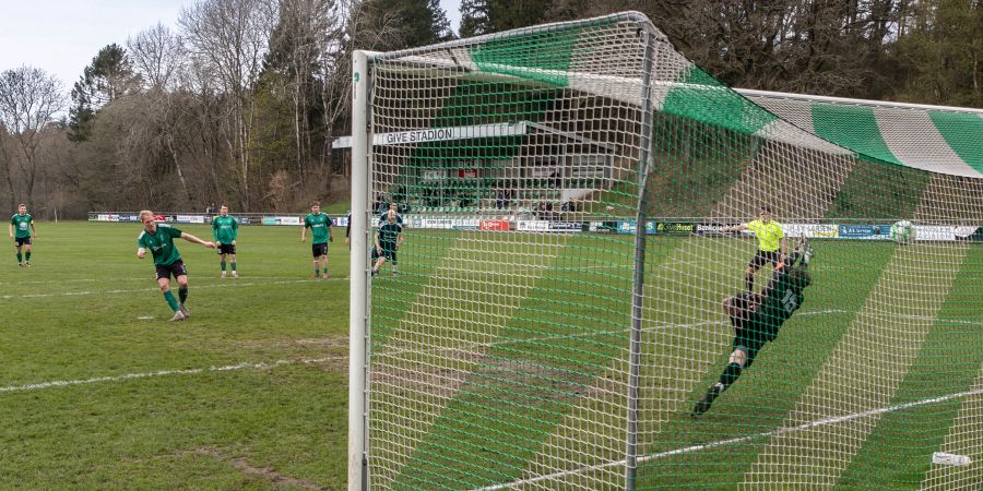 Foto: Martin Nørskov bringer her Give på 1-0 i det14. minut på et sikkert eksekveret straffespark. Et kunststykke han gentog i det 38. minut. Foto: Jim Hoff