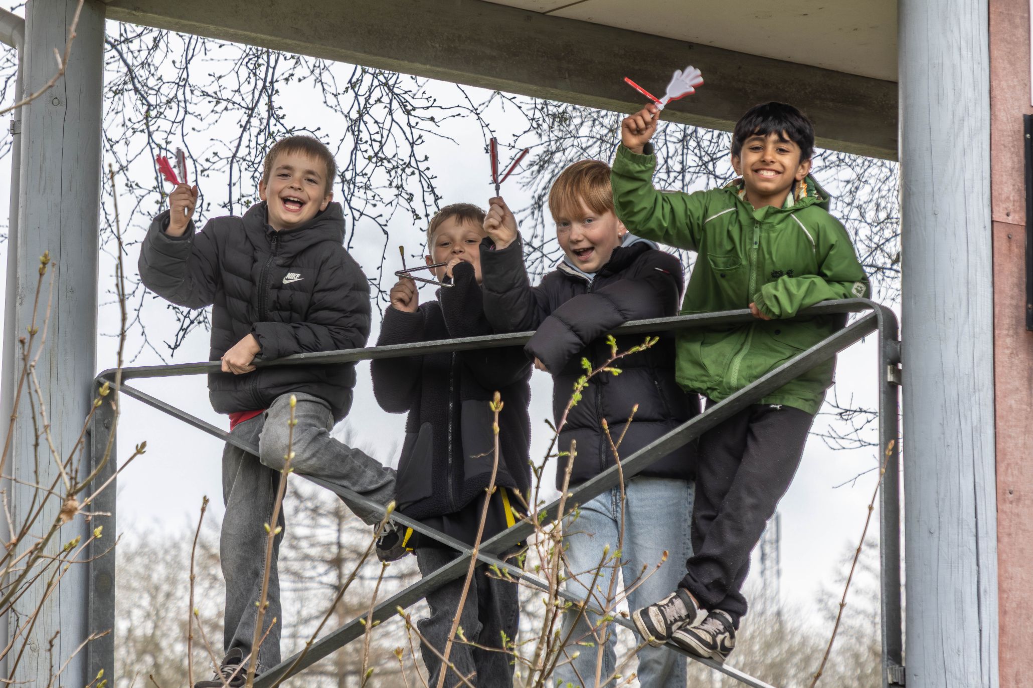 Disse fire herlige gutter var med til at give den god stemningsgas på tribunen, og de leverede flot opbakning til hjemmeholdet gennem 90 minutter. Foto: Jim Hoff