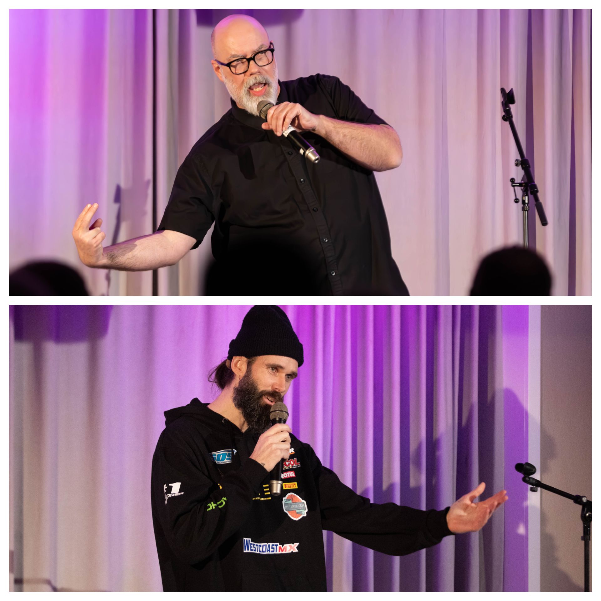 Vi kom vidt omkring rent tematisk lige fra problematisk hængeflæsk, prostata- og vægtproblemer, komplicerede kærlighedsforhold (læs: sex er noget bøvl), en jyde i Københavns mange genvordigheder med behandlingssystemet, desperate housewife issues i Beverly Risskov, og traumatiske oplevelser med hårde hvidevarer. Plus meget andet godt fra den komiske skattekiste.