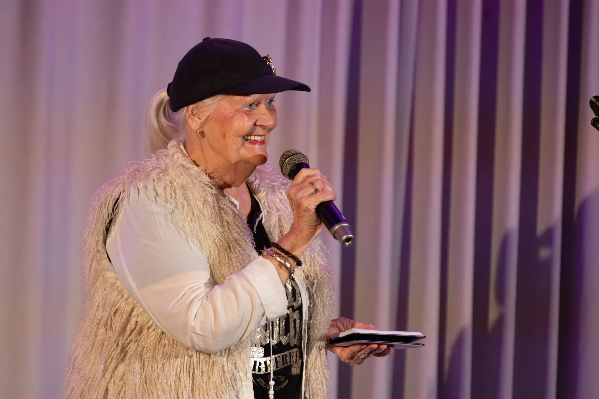 79-årige Lis Rytter kom vidt omkring i sit indslag - også syd for navlen, og publikum elskede det. Foto:Jim Hoff
