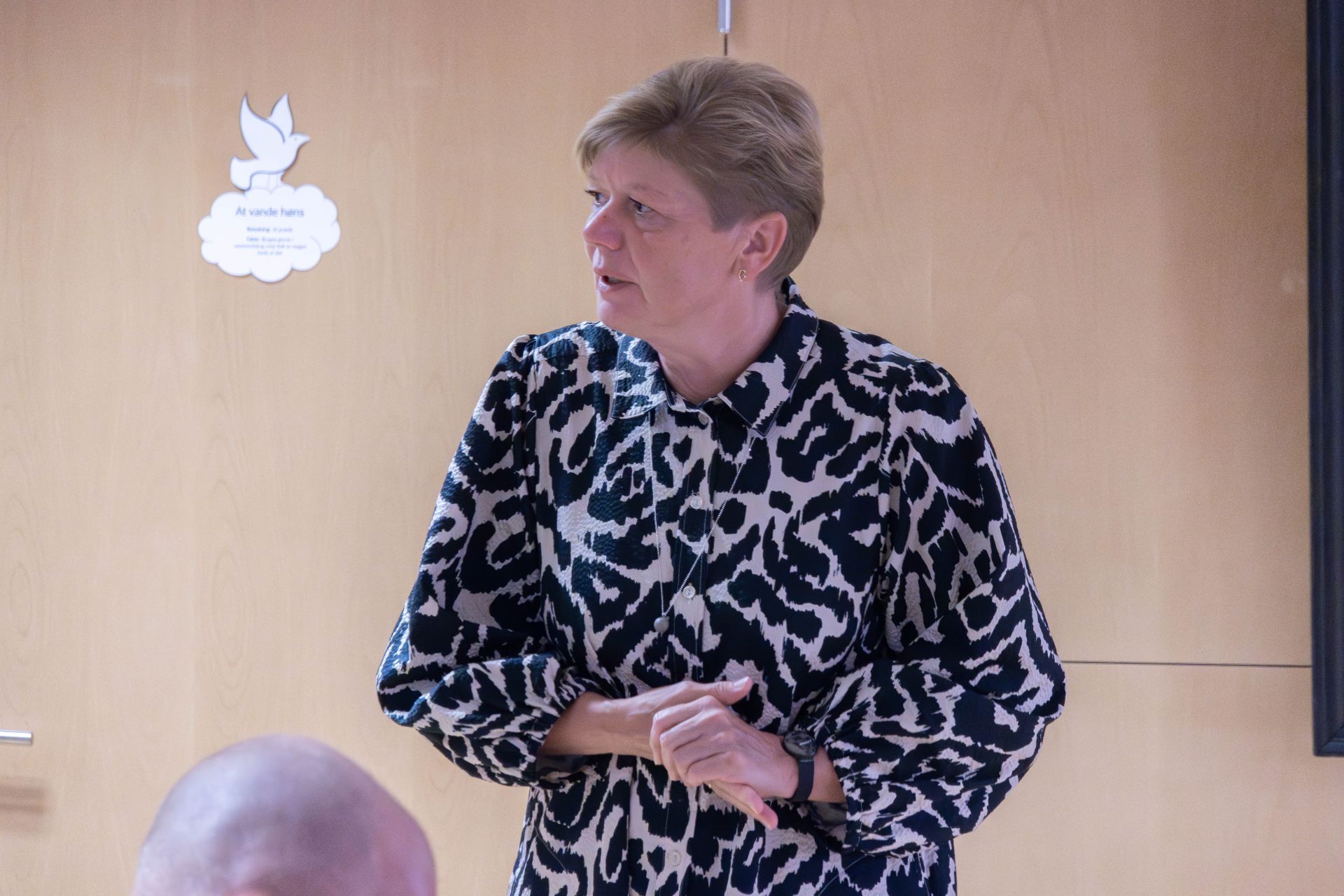 Formanden for teknisk udvalg i Vejle Kommune, Gerda Jørgensen (V), kunne fortælle, at man har gang i en dialog med Real Dania omkring søgning af fondsmidler til bymidten i Give. Foto: Jim Hoff