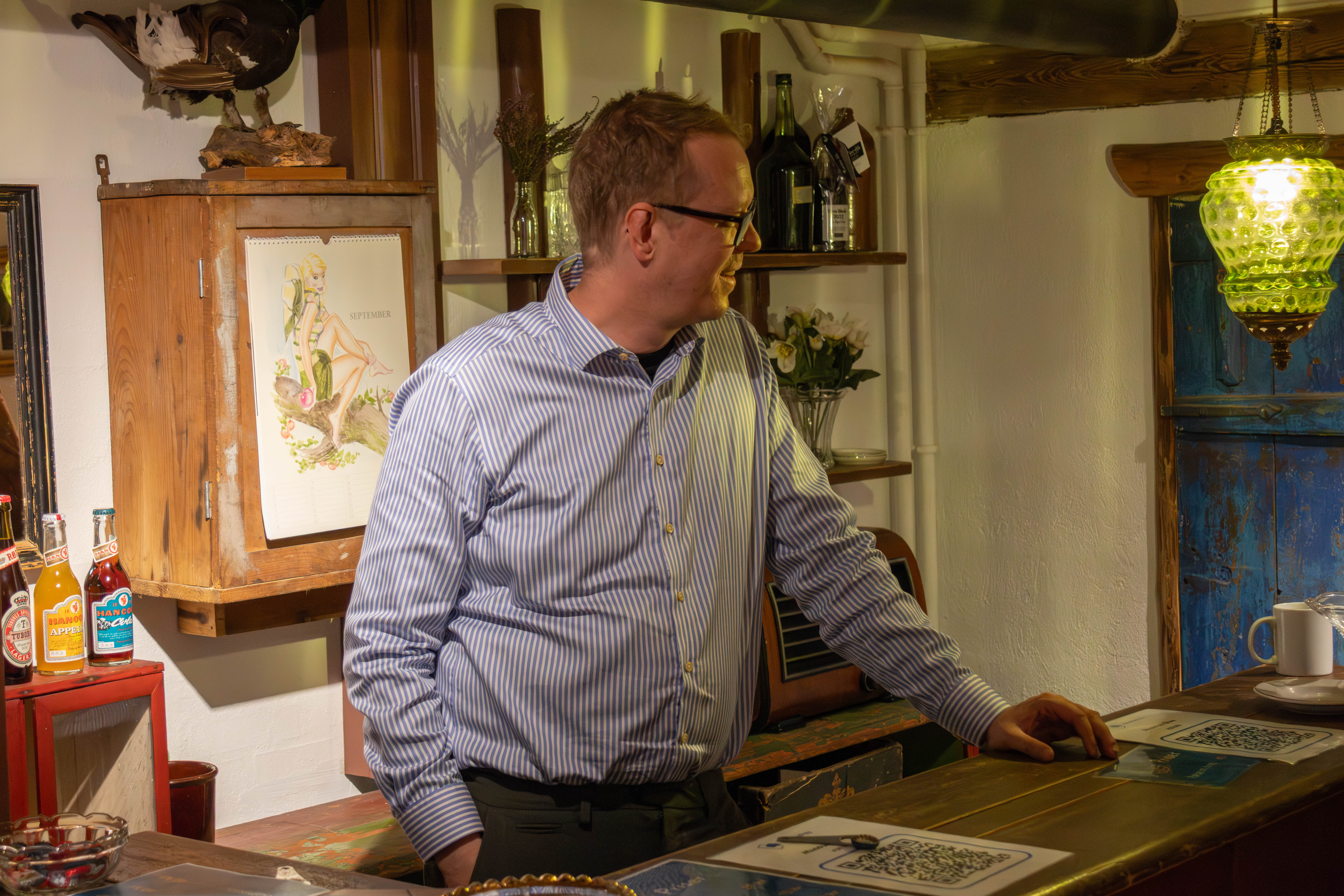 Foto 2: Museumsinspektør Mads Struwe Jeppesen var klar med fire rigtig fine og sjove krohistoriske fortællinger, som blev serveret fra baren. Foto: Celia Simonsen