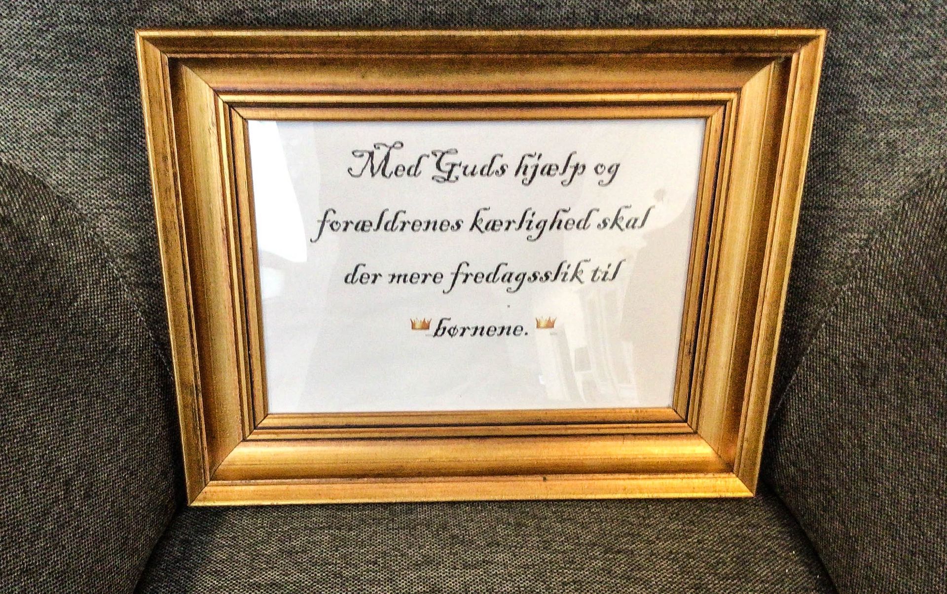 Og her har vi så Kong Frederiks nye valgsprog - måske en anelse fortolket i børnehøjde. Foto: Pernille Marcussen