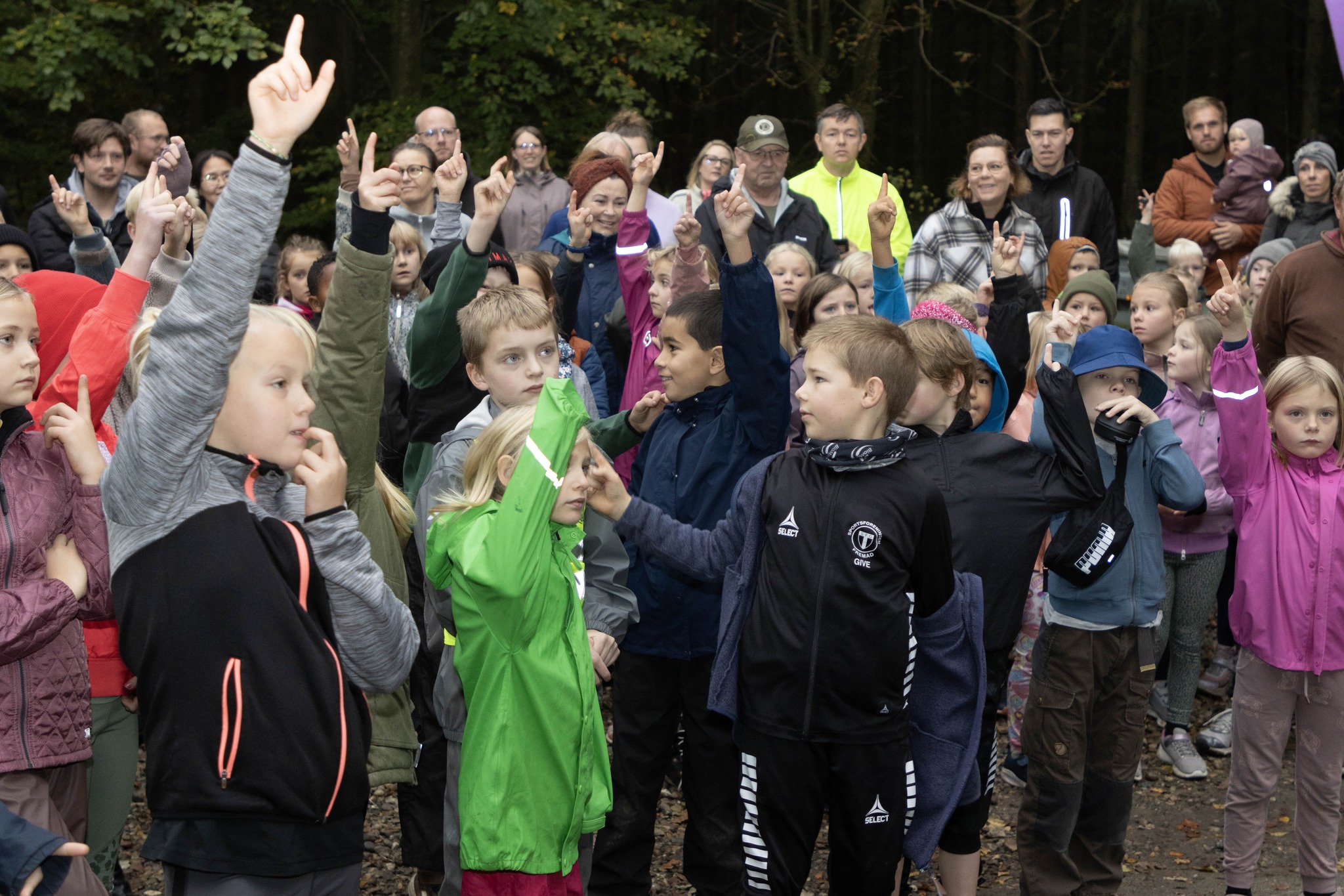 DET GODE SKOLELIV: Godt 130 glade børn fra Hedegård Friskole havde sat hinanden stævne i Give Plantage fredag klokken 8.15. Med en ugelang efterårsferie lurende lige om hjørnet var humøret højt både hos børn og de medbragte lærere og pædagoger, og mon ikke også mange af de unge mennesker glædede sig til at komme ud på den årlige traditionelle motionstur i plantagen.