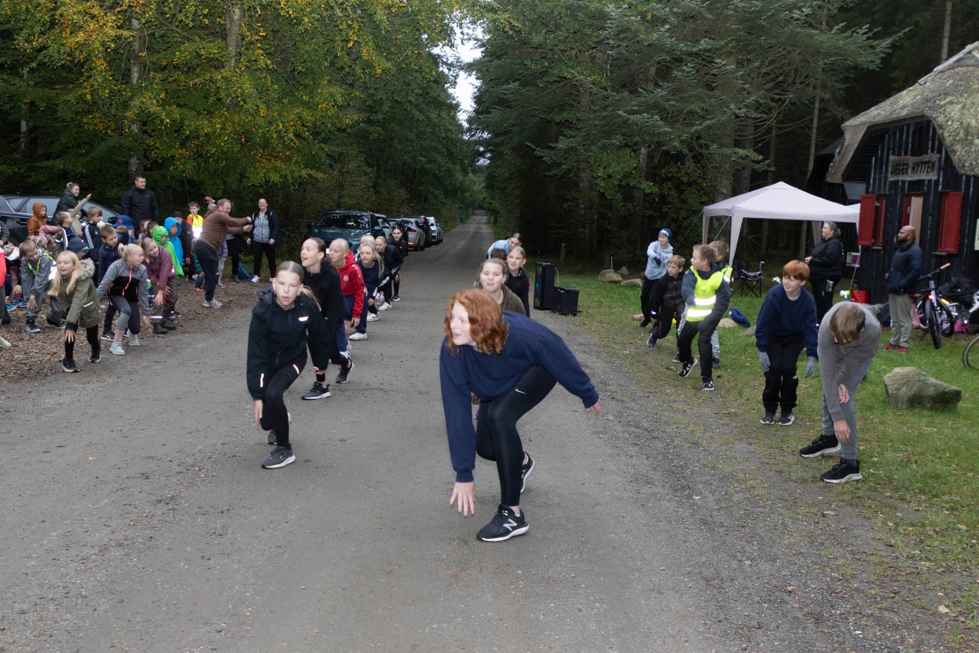Så var der afgang, dels ud i den smukke plantage, dels ud på cykelruten. De store fra 4. til og med 8. klasse blev sendt afsted først - hvilket foregik i spring de første 60 meter, hvorefter intensiteten faldt til et mere morfaragtigt tempo, smiley.