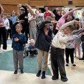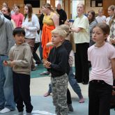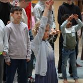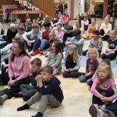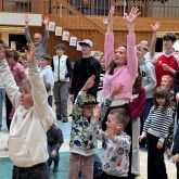 Foto: Der var liv og glade dage fredag den 11. april på friskolen i Karlskov, hvor man fejrede Skolernes Sangdag sammen med DR. Og skolen fik da også lige shine på landsdækkende tv. Foto: Jim Hoff