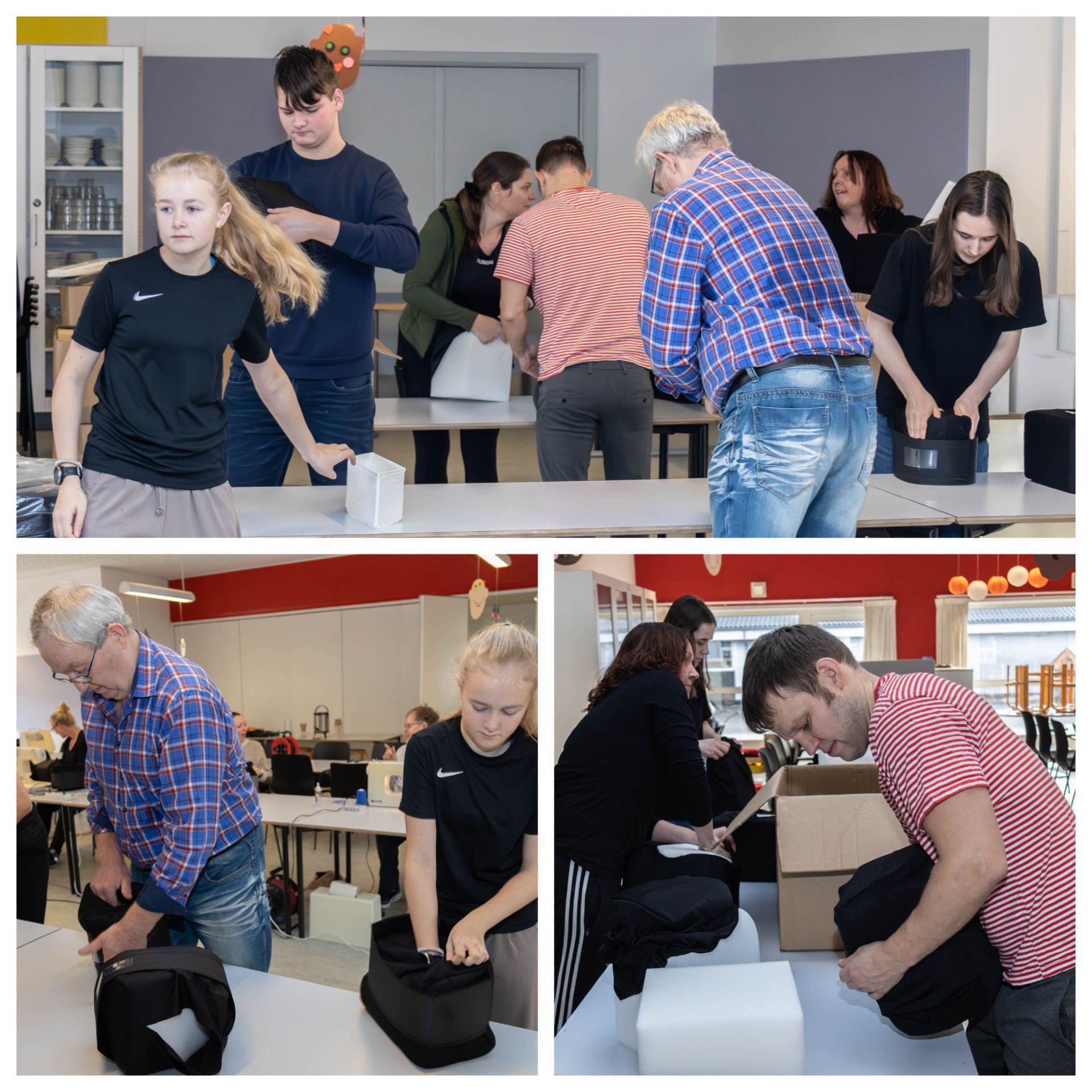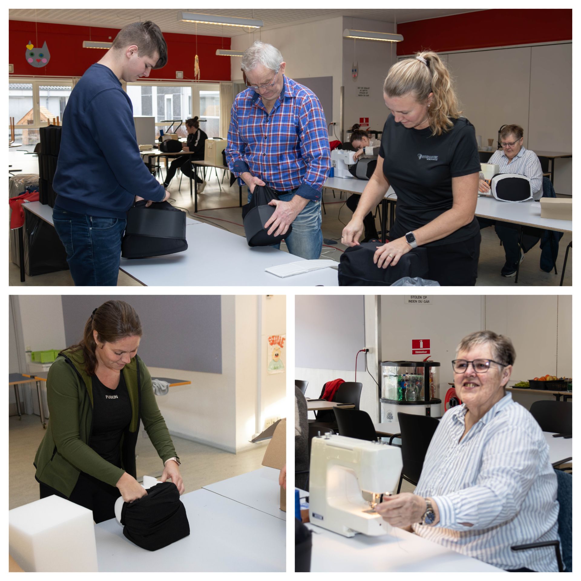- Michael er en iderig mand, så han undersøgte mulighederne og markedet, og han er jo lidt af en Georg Gearløs, så vi fandt frem til en model, så vi selv kunne løfte denne her opgave – og dermed spare en hel masse gode penge, som så kommer det nye idrætscenter til gavn. Michaels forældre er jo også begge med her i dag, Michaels far er med i “presse-afdelingen”, og mor Margit styrer tropperne ved symaskinerne, hvor hun også selv giver den gas.