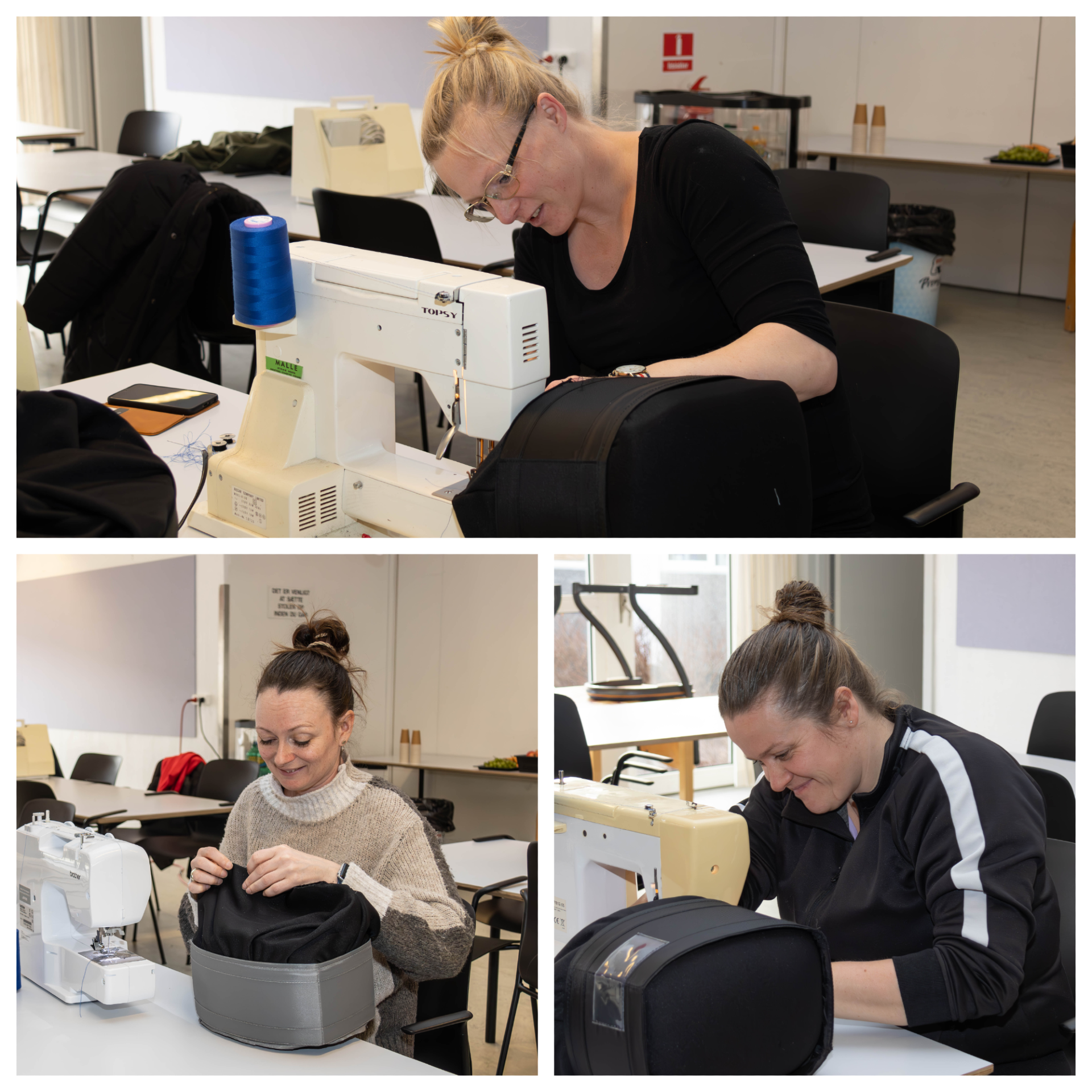 Avisens udsendte er på pletten lørdag formiddag, hvor det første arbejdshold på 14-15 personer er godt i gang. De 5 symaskiner er bemandet med kompetente kvinder, der arbejder fokuseret med tungen lige i munden, heriblandt Joan, der er højgravid i 9. måned og et par dage over tid.
