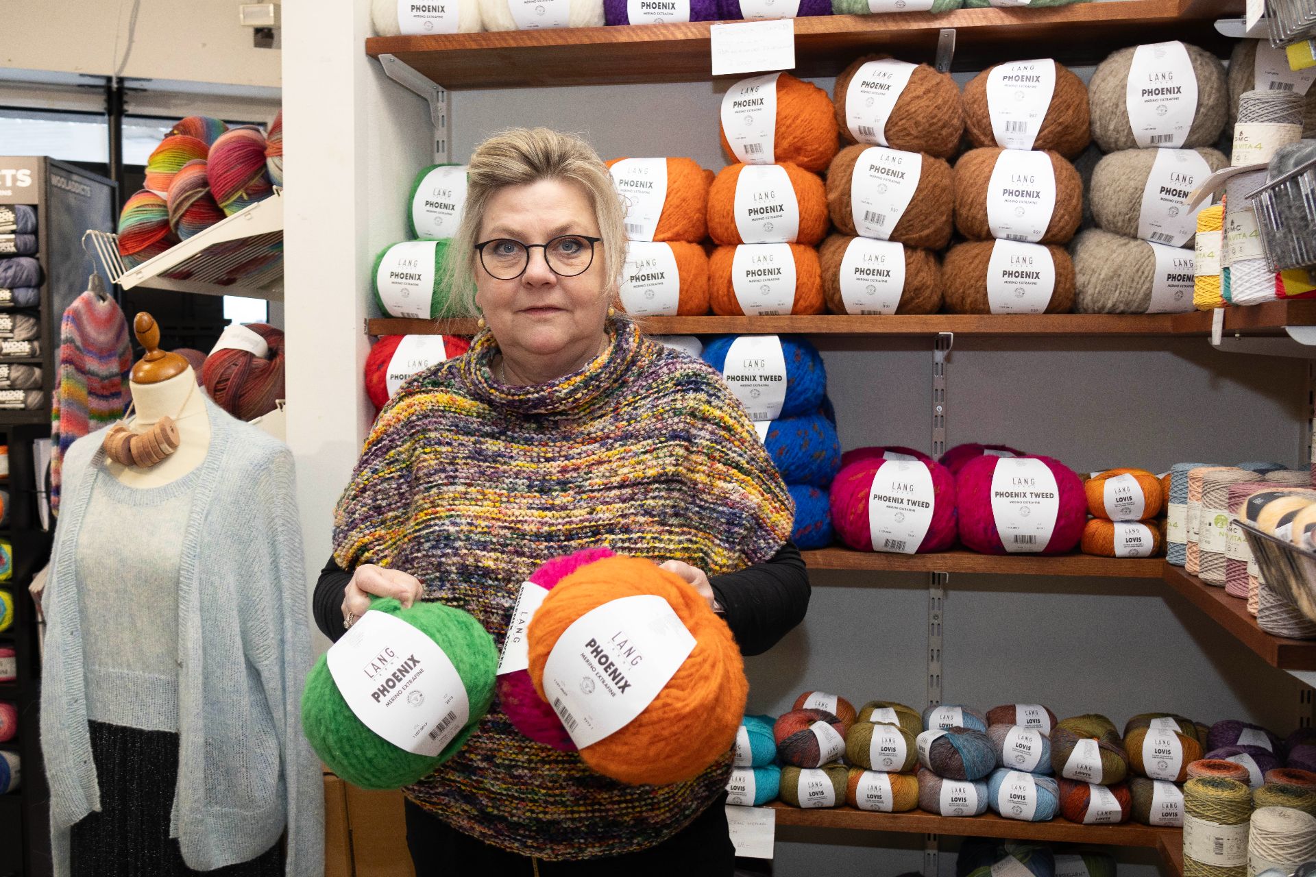 Der er masser af lækkert garn i butikken på Vejlevej hos Pia Runoberg. Og hun har både de dyre og de lidt billigere mærker på lager. Foto: Jim Hoff