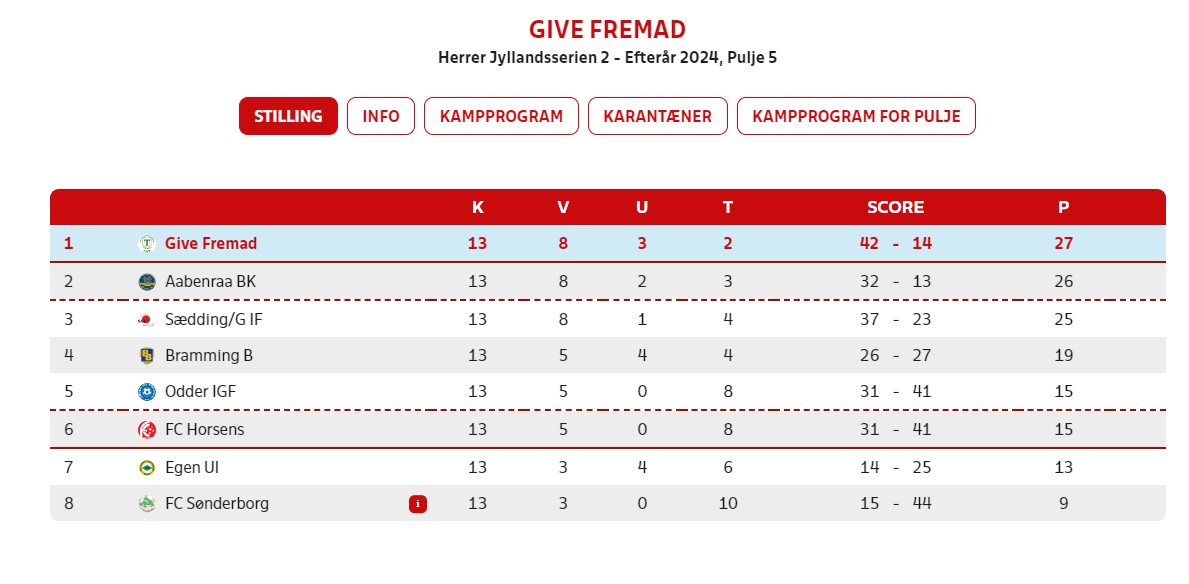Scenariet for sidste spillerunde er ret let: Hvis Give vinder i Sædding, så bliver de nr. 1 og rykker direkte op i JS 1.Og det er nok påkrævet, idet nr. 2 fra Aabenraa har en hjemmekamp mod FC Sønderborg, der er definitivt rykket ned.