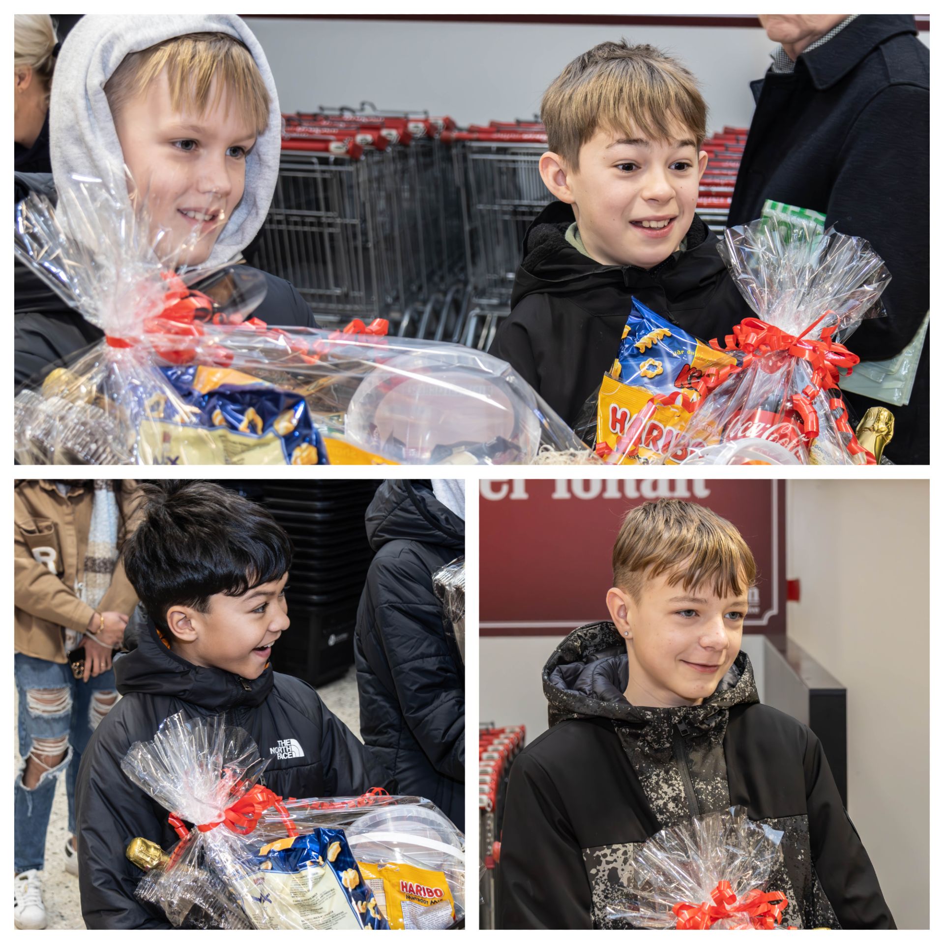 De fire drenge modtog gavekort og gavekurve med meget stor benovelse og glæde. Se bare her. Foto: Jim Hoff