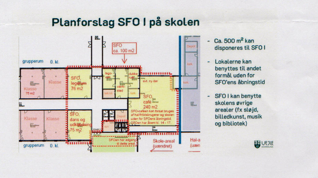 Med de mange ekstra kvadratmeter at gøre godt med giver det nu skolen muligheder for at lave en endnu bedre SFO-løsning inden for skolens rammer, og skolen vil ifølge skolelederen nu kigge på de hidtidige planer og lave evt. ændringer med de nye muligheder.