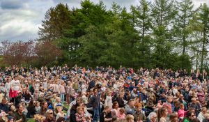 De fleste af børnene tog troligt opstilling ved scenen på pladsen foran Huset, og så var der nogle, der var i kontakt med deres indre legebarn og naturen på græsplænen ved Huset, hvor der blev slået kolbøtter og leget cowboys og indianere, røvere og soldater og tag-fat.