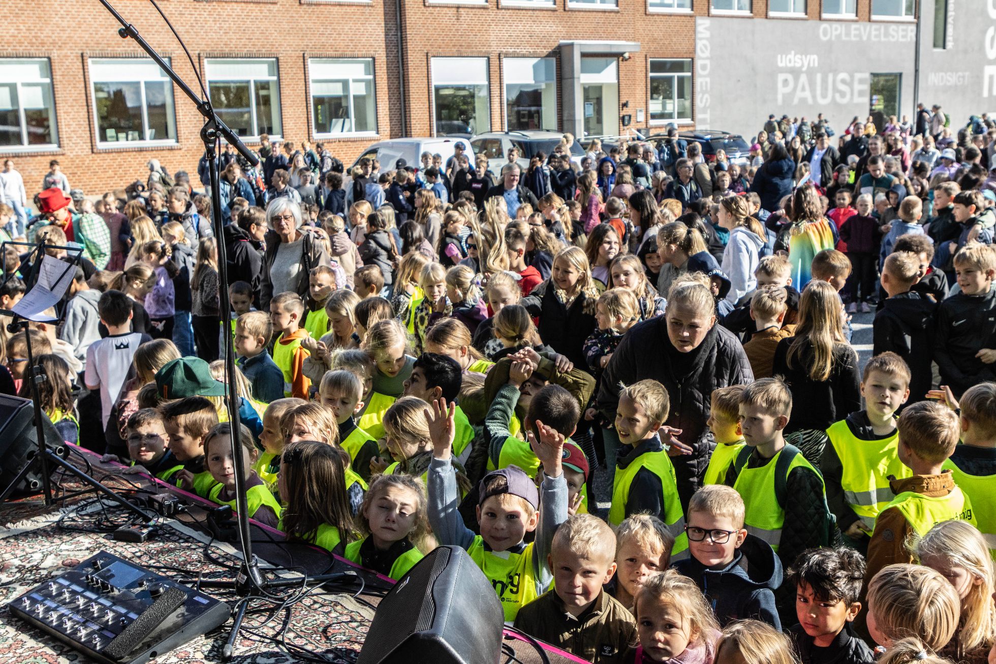 Der var masser af børn på plads foran scenen, da Spotlight Festivallen blev spillet i geng i Give. Foto: Jim Hoff
