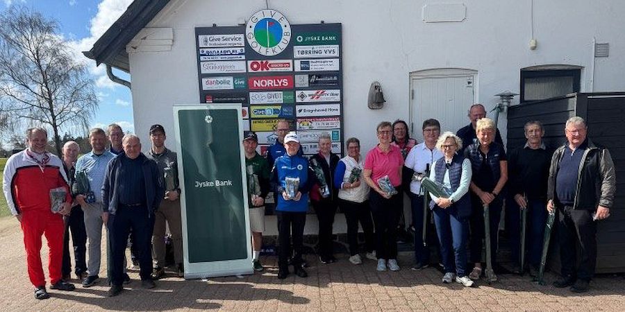 Søndag d. 12. april 2026 stillede 67 spillere op til åbningsturnering i Give Golf Klub med Jyske Bank som sponsor på en bane, der stod fantastisk skarp og vejret gik fra en lidt kølig morgenstund til rigtig flot solskinsvejr – så der blev spillet godt golf med mange flotte scores.