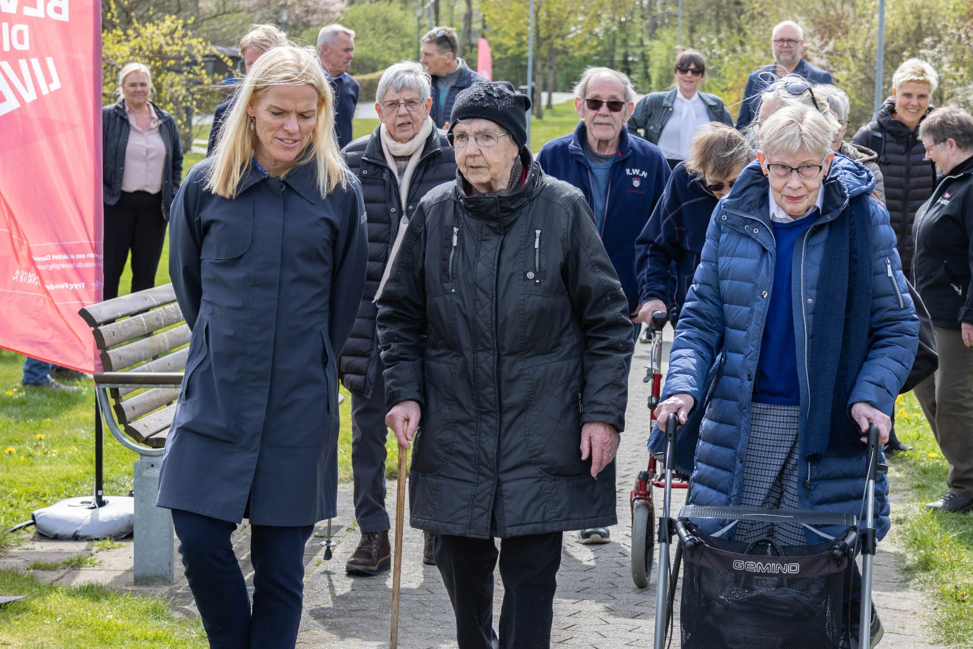 Susanne havde nemlig i den grad gjort et stort positivt indtryk på Mette Kierkgaard, da hun 1. maj besøgte Give i forbindelse med Vejle Kommunes fokus på konceptet ”Bevæg dig for livet”. Her havde Susanne Rye først haft ministeren med på en walk-and-talk tur ved og omkring Kastaniehaven med en stor del af det hold, som de lokale gå-værter har fået op at køre i Give.
