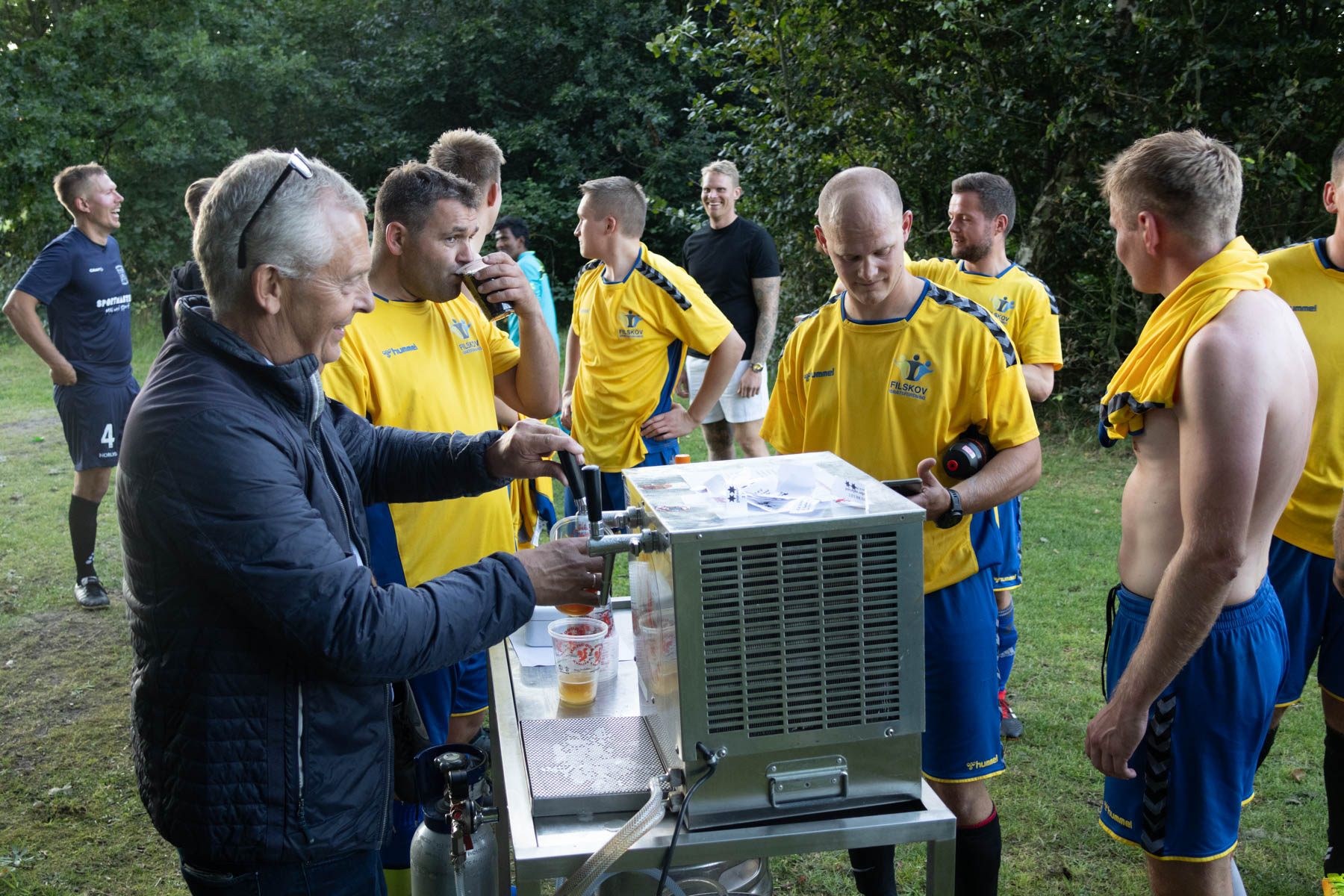 Nok vandt GLIF selve fodboldkampen, men de blå/gule fra Filskov vandt kampen om at komme først til fadølsanlægget. Foto: Jim Hoff