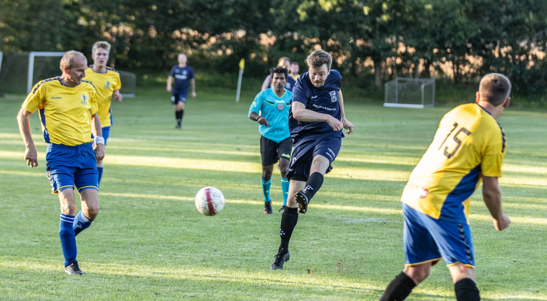 ”Legendernes Kamp” var aftenens opvisningskamp på Green Hill Trafford i Grønbjerg døbt, og den varedeklaration havde godt 200 tilskuere købt ind på, heraf de 99,9 procent fra Grønberg/Langelund, der denne weekend afholder sommerfest.