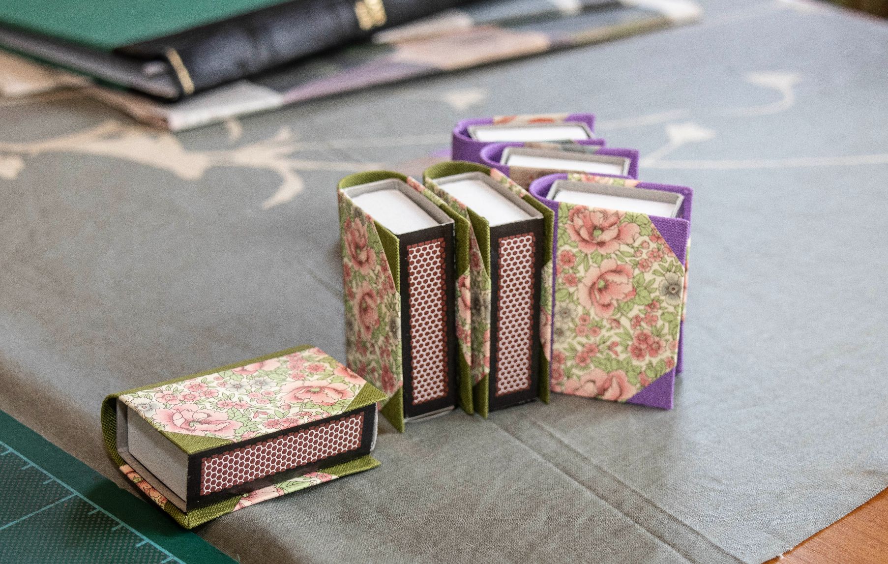 Som det nyeste er Erik og Peter begyndt at lave 'tændstikæsker' - små fine minibøger. Foto: Jim Hoff