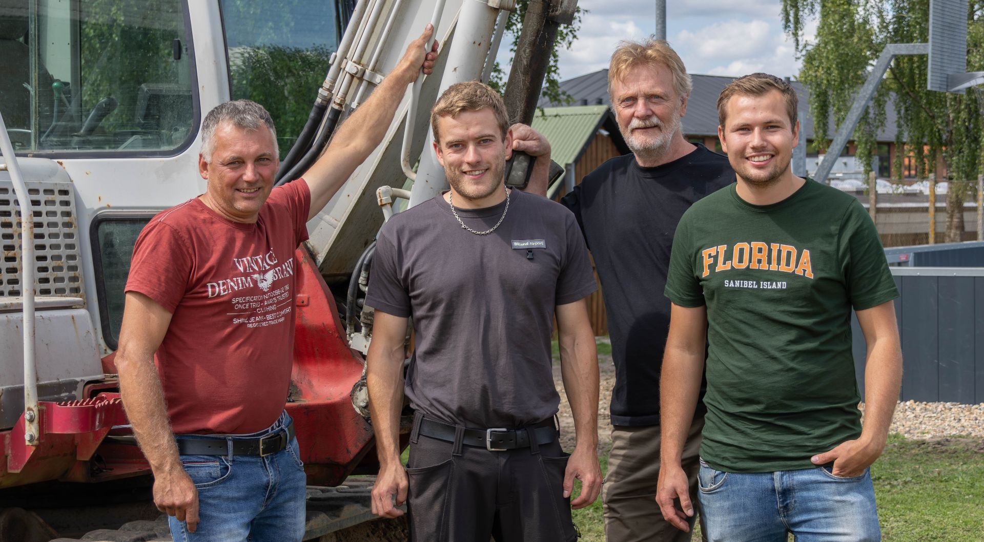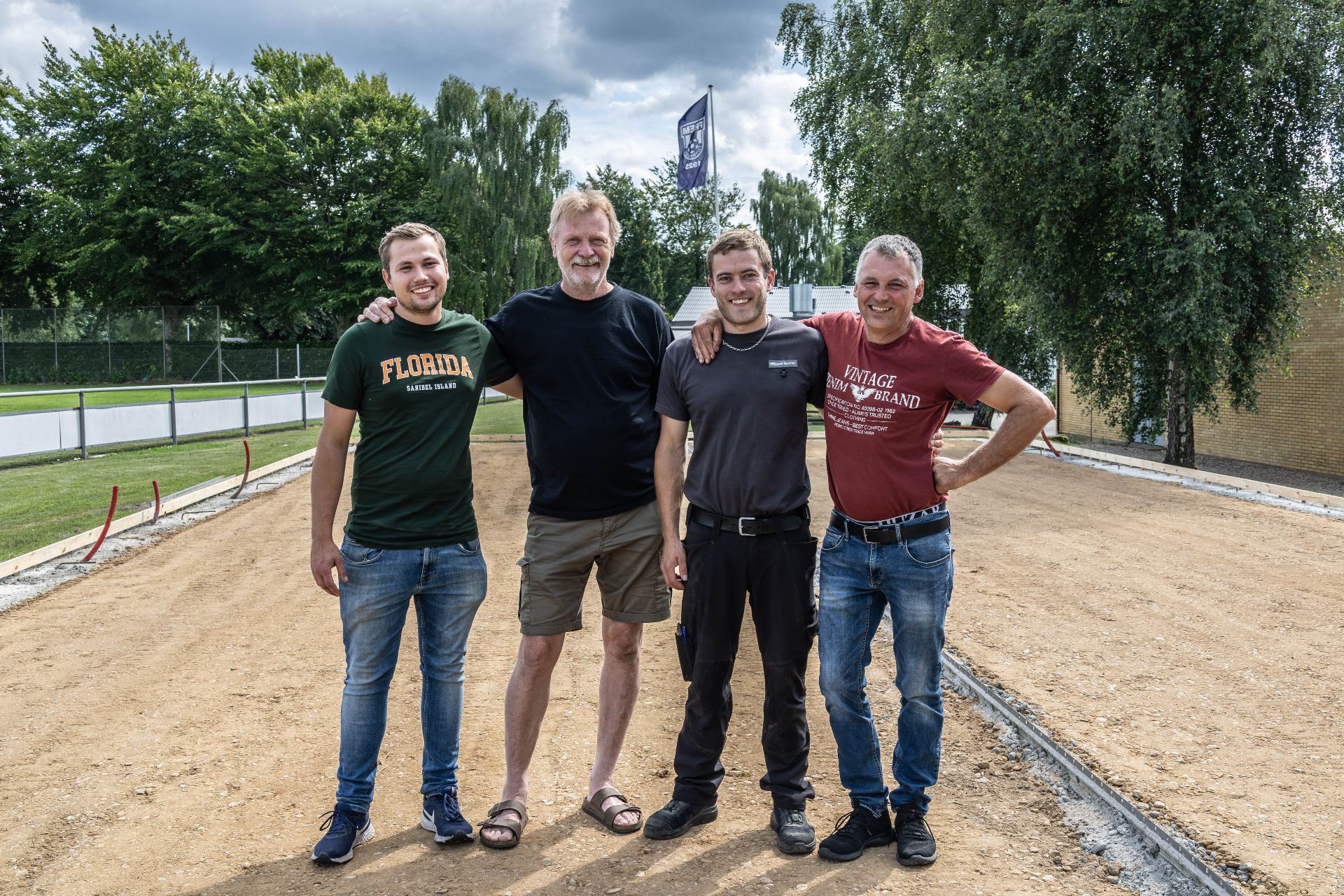 - Det er faktisk gået rigtig godt og rigtig hurtigt. Der er vel gået cirka et halvt år fra ideen blomstrede, til at vi i dag står her med en støbt sokkel til padeltennisbanen. Selve jordarbejdet er gået vildt hurtigt, og så er det også gået rigtig godt med at skaffe midlerne til projektet. De adspurgte erhvervsfolk her i byen og omegnen har været utroligt positive - ingen nej-hatte der. Det samme med søgning af fondsmidlerne. Her er det også gået rigtig fint, så vi er yderst taknemmelige over den store opbakning og den store lokale velvilje, vi har mødt, lyder det fra de fire herrer.