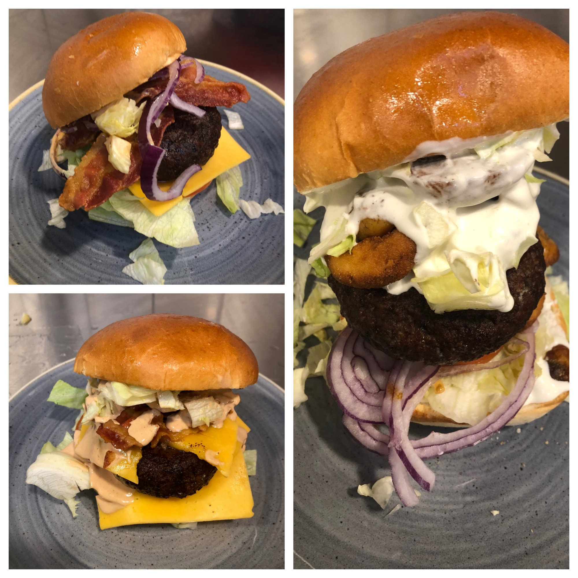 Burgerne findes i tre varianter, hvor det handler meget om fyldet/tilbehøret til burgerne.Foto: Thyregod Kro