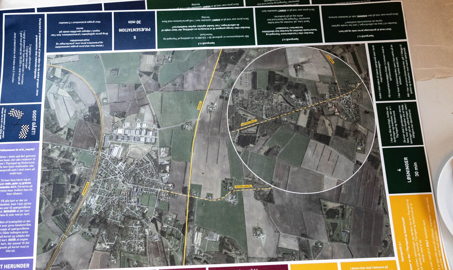 De 45 deltagere blev delt op i 9 grupper, udstyret med et kort over området samt nogle kort, som de kunne skrive ideer og løsningsforslag på. De skulle nemlig “spille” Arki-Nopoly, hvor deltagerne blev ført gennem fem faser, der alle relaterer til livet i Thyregod og Vesterlund. De fem faser indeholdt alle en række spørgsmål. som deltagerne skulle svare på undervejs.