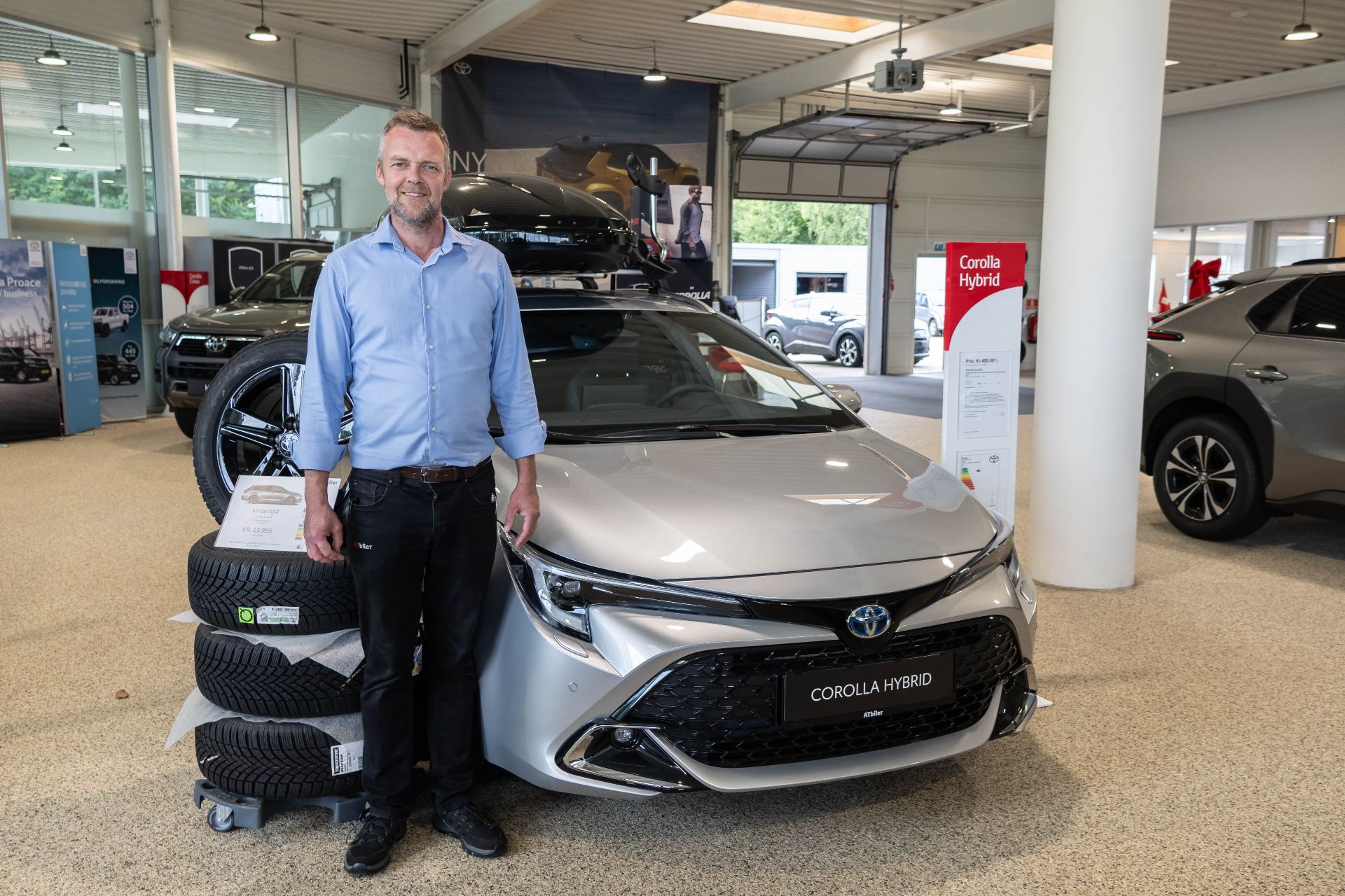 Salgschef Esben Laursen med den nye Toyota Corolla Hybrid. Foto: Jim Hoff
