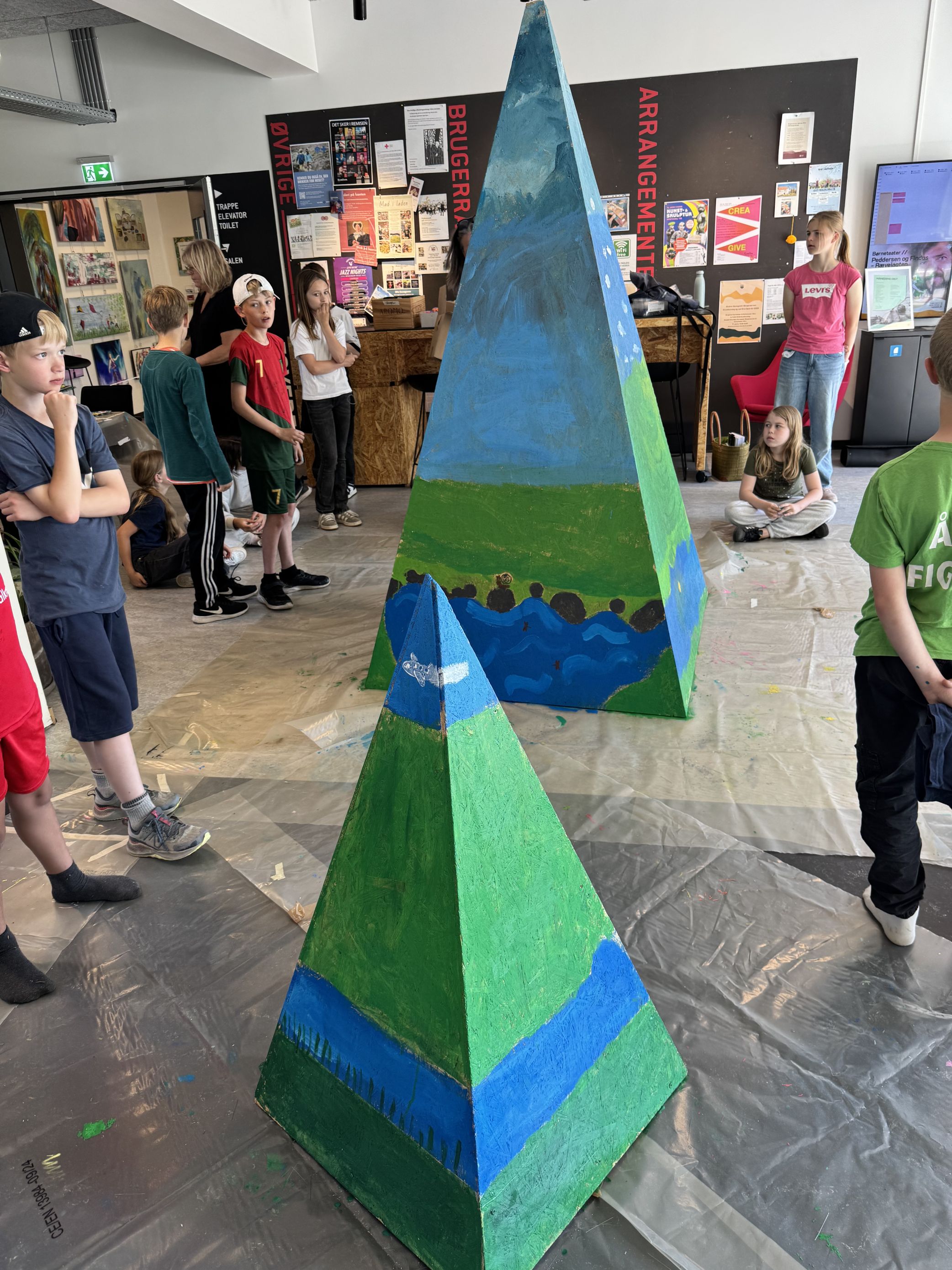 Foto: Skolebørn fra Firkløverskolens Ikæraddelingens 4. A har sammen med kunsteren Susanne Ahrenkiel skabt nogle pymadier, der jo er som energiforstærkere, og de bliver udstillet på Torvet til Kunst- & Skulpturfestivalen den 4. juni. Foto: Jim Hoff