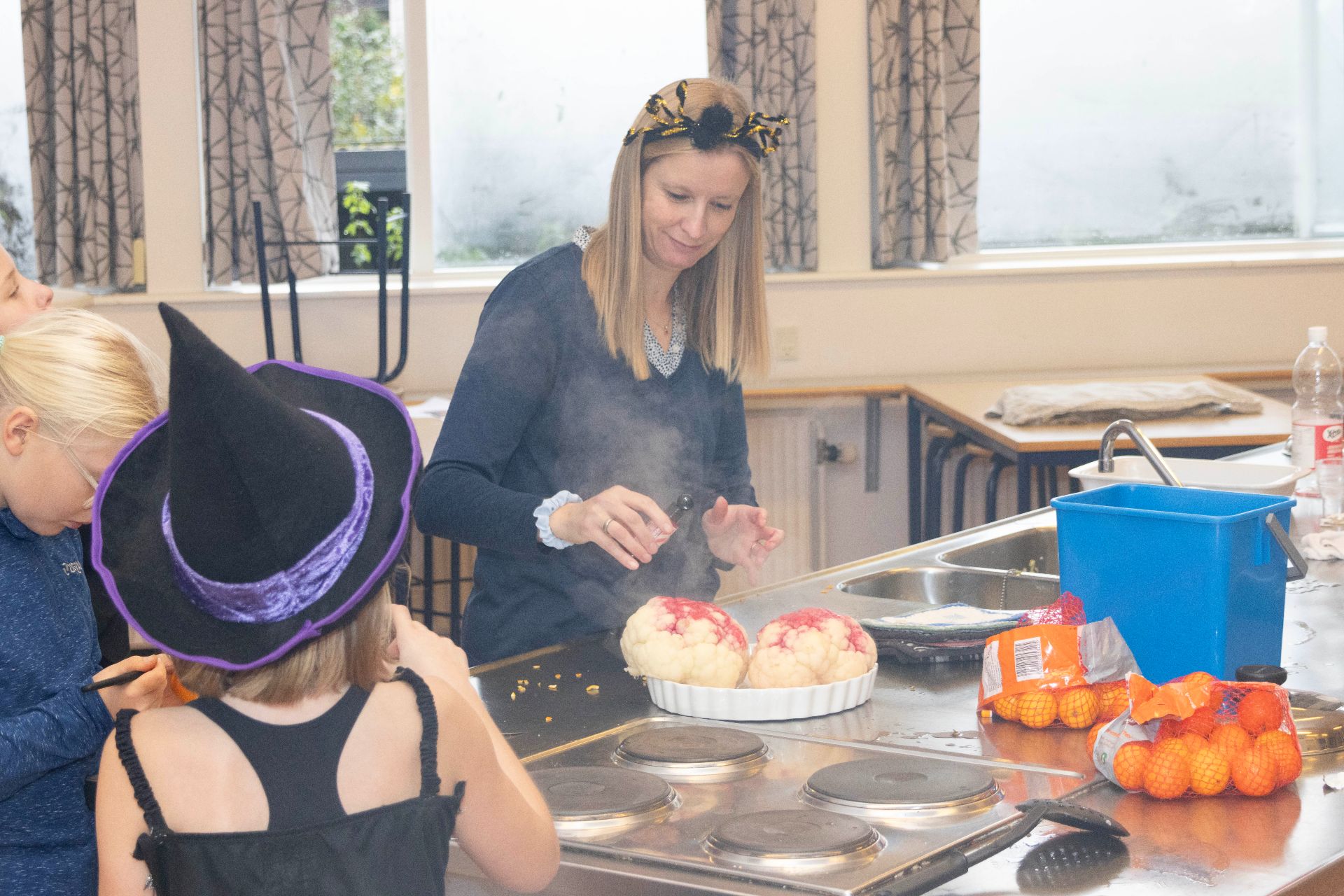 Det var anden gang, at eleverne og de voksne på læringscenter Givskud var samlet om en halloweenfest, og man dyrker også sammenkomster til både pinse og påske. Denne gang var det dog første gang, at al maden var hjemmelavet – og selve processen med at lave maden i det røg og dampfyldte hjemkundskabslokale var en stor del af dagens pædagogisk/didaktiske islæt - hvor det altså var uhyggen, der dannede rammen om et fint fællesskab.