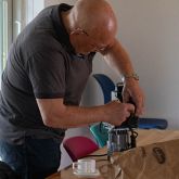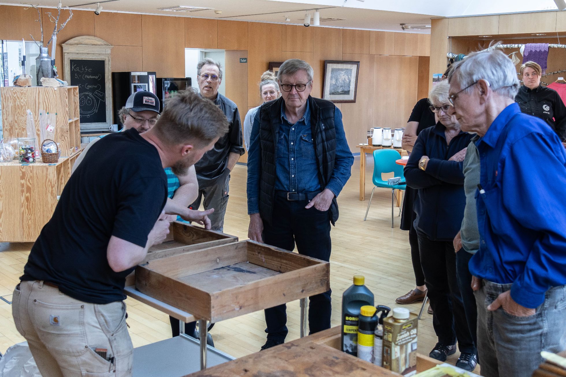 Denne torsdag aften er det møbelkonservator/møbelsnedker Christian Baastrup fra Konserveringscenter Vejle, der er på plads for dels at fortælle om sit arbejde som møbelsnedker/konservator og dels at hjælpe folk med eventuelle trærelaterede opgaver, for eksempel dukker en borge denne aften op med en træstol, der har set bedre dage, og den kommer så gennem Christians kyndige hænder.