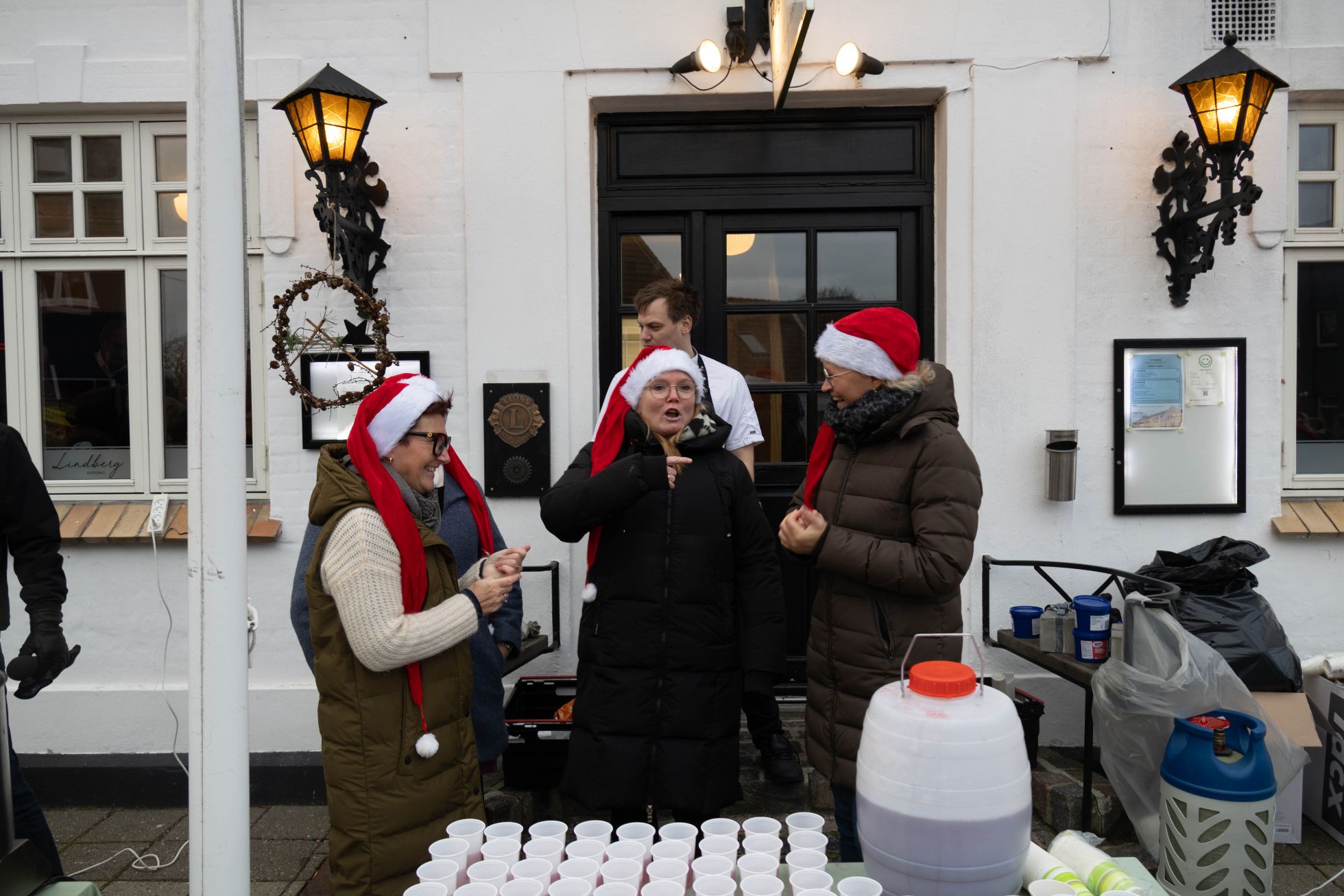 Det gav de voksne, et begreb der selvfølgelig skal tages med et grans salt, smiley, lejlighed til at få spist de sidste æbleskiver og drukket det sidste gløgg, der blev rundhåndet delt ud foran kroen med en række gavmilde julenisser fra byens butiks- og erhvervsliv bag skranken.