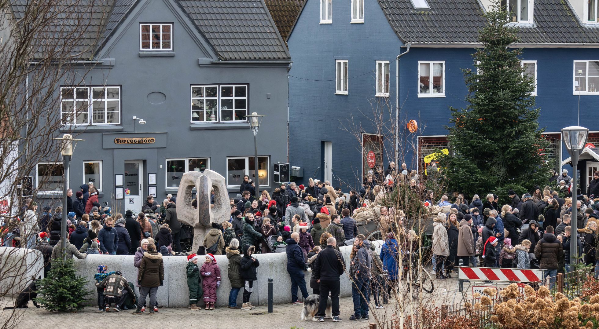 Flot opbakning til juletræstændingen i Give - og superfin stemning på Torvet. Foto: Jim Hoff