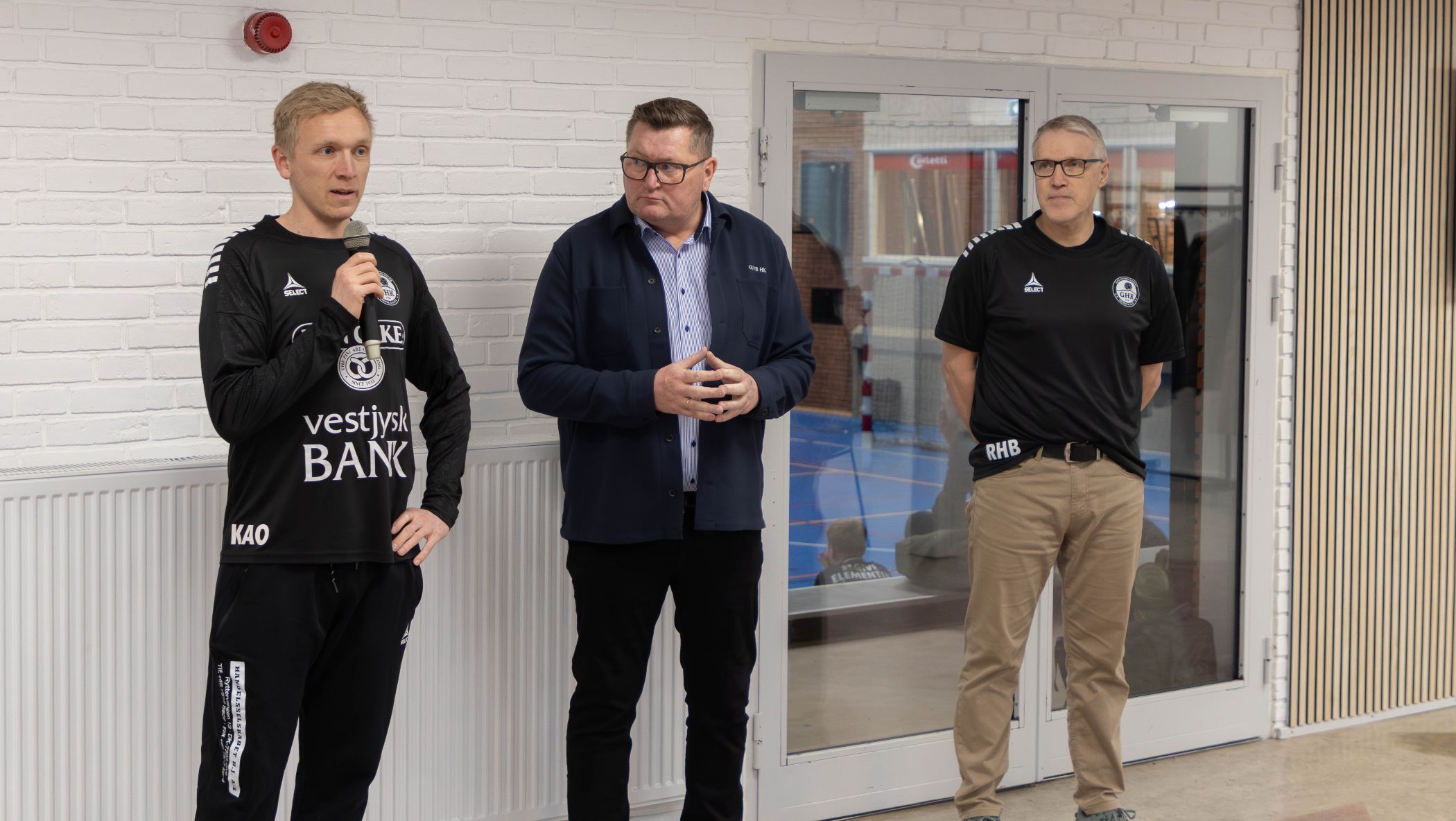 Kristian Olsen, der pt. er assistenttræner under Torben Sørensen, ser frem til samarbejdet med René Hamann-Boeriths. I midten eliteudvalgets formand, Henrik Henriksen, der også glæder sig over, ar man har landet så flot et navn i Give. Foto: Jim Hoff